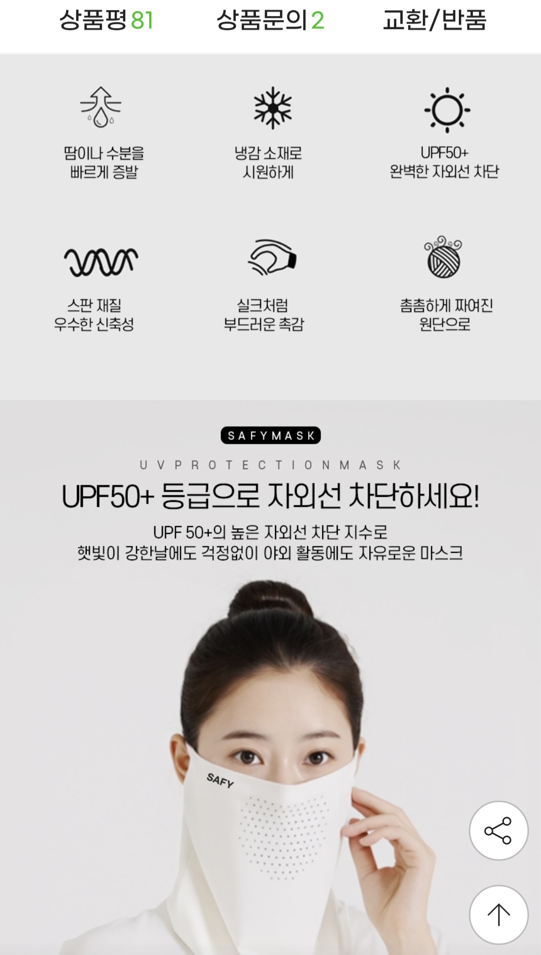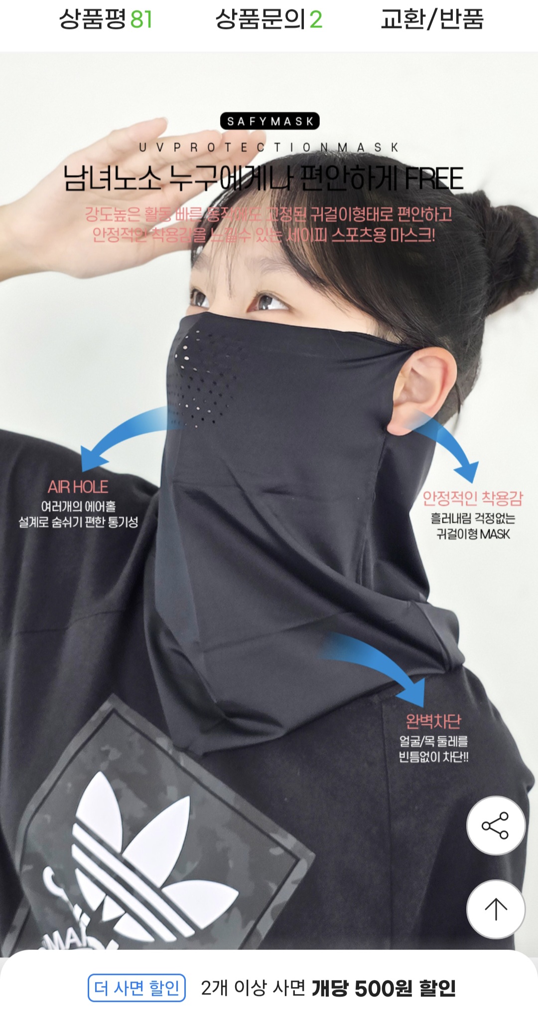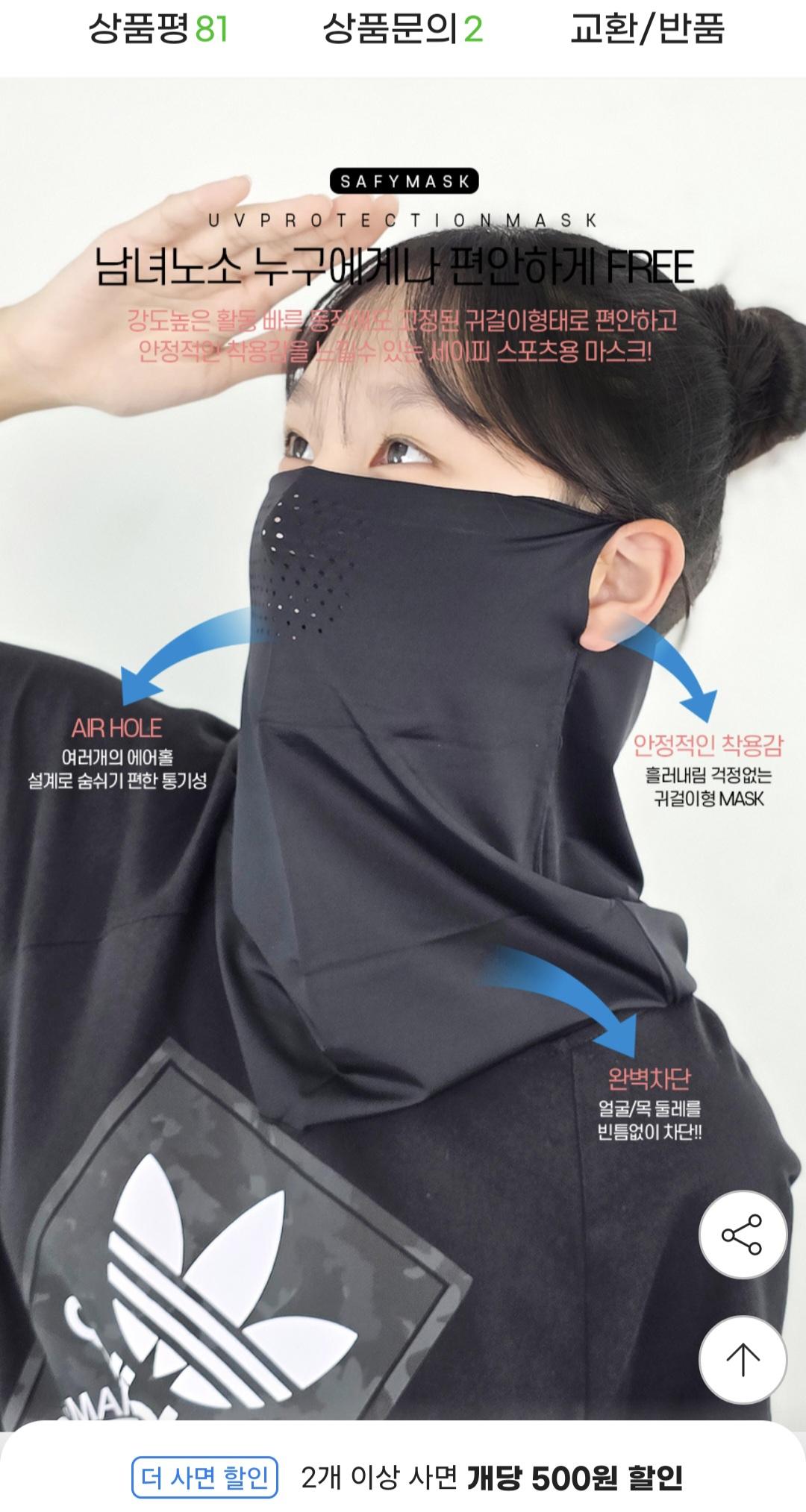 [지마켓] 1+1 자외선차단 야외활동 스포츠용 냉감 쿨 기능성 마스크 (7,110원/무료)