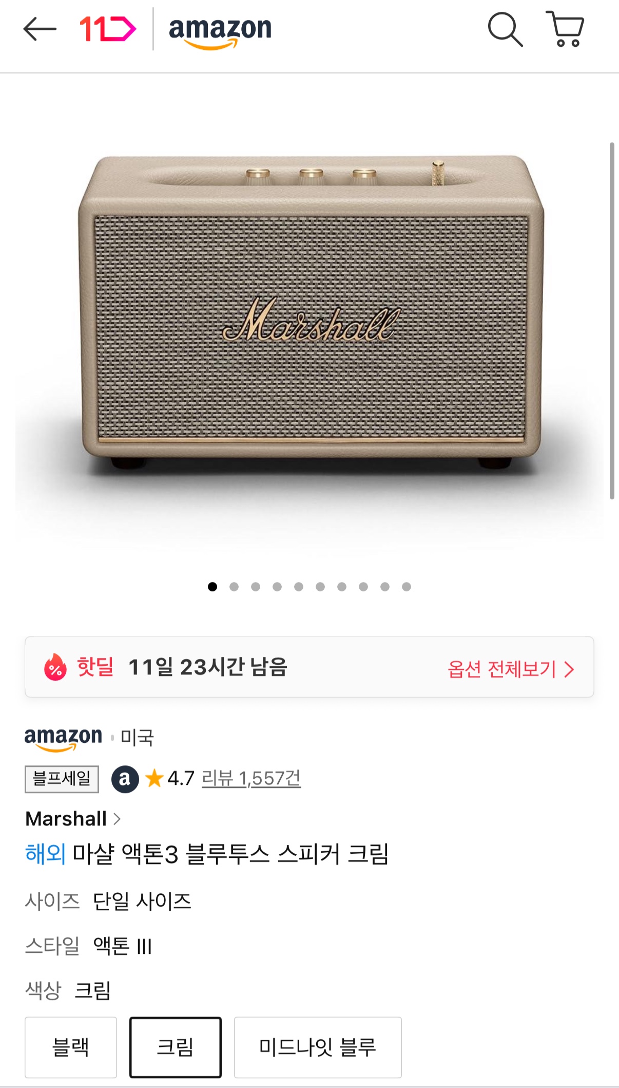 [11번가아마존] 마샬 액톤3 블루투스 스피커 크림 (299,060원/무료)