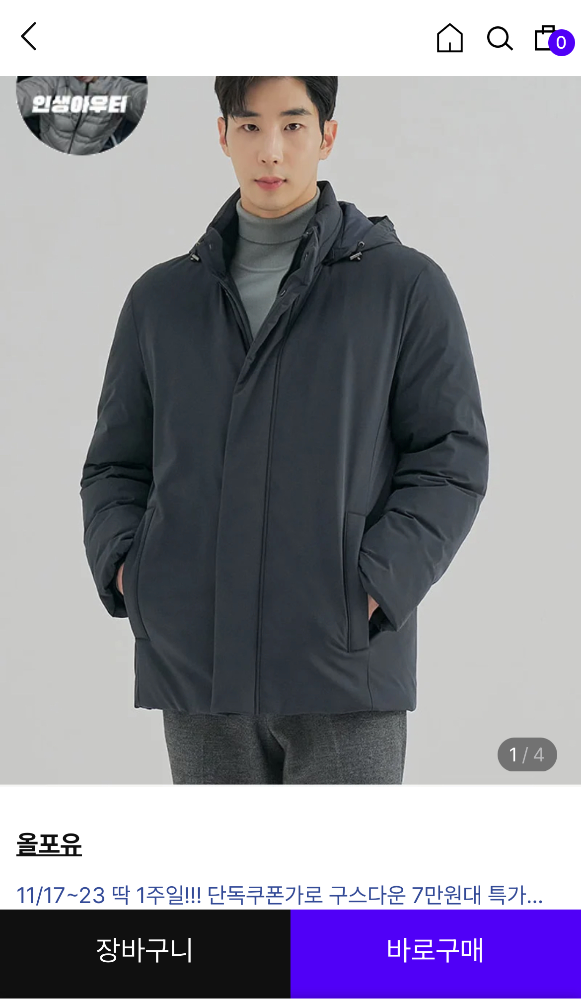 [패션플러스] 올포유 남성 구스 다운 점퍼 (76,500원/무배)