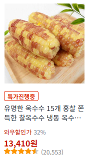 [쿠팡]32%할인 찰옥수수 특가 진행중 (13,410원 / 무배)