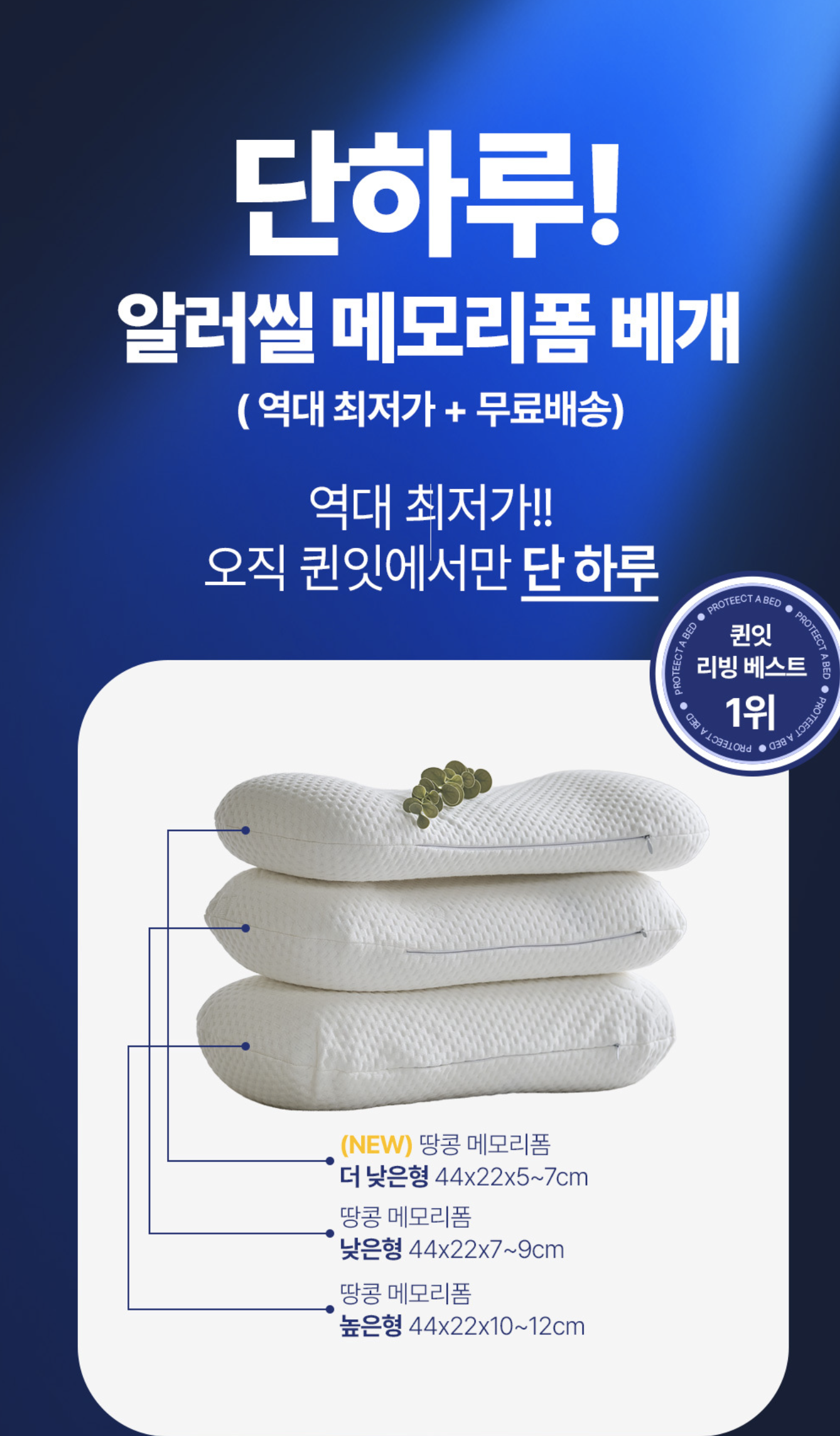 [퀸잇] 텐셀 방수 메모리폼 베개 땅콩형 1+1 (19,.900원/무료) > 국내핫딜