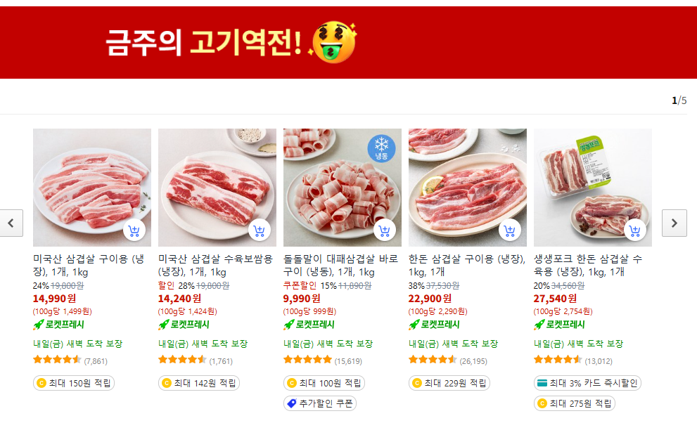 [쿠팡] 김장김치엔 역시 수육이지! (한우/소고기/돼지고기) 깜짝할인! > 국내핫딜