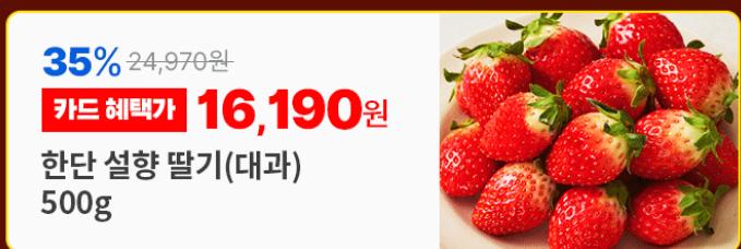[쿠팡]35%할인 한단 설향 딸기(대과) 500g (16,190원 / 무배)