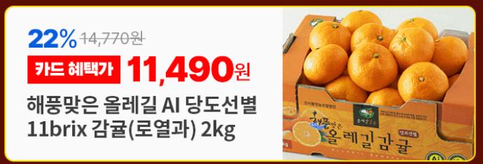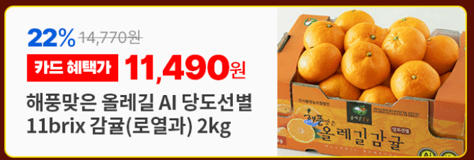 [쿠팡] 22%할인 해풍맞은 올레긴 AI 당도선별 11brix 감귤 2kg (11,490원 / 무배) > 국내핫딜