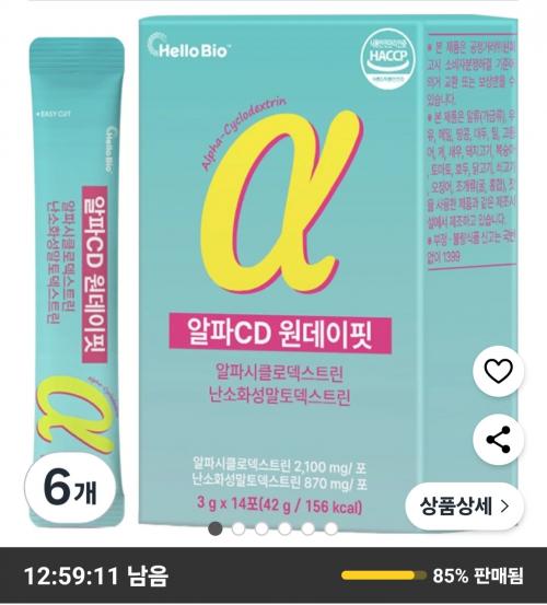 [쿠팡] 헬로바이오 알파CD 원데이핏 알파시클로덱스트린 난소화성 말토덱스트린 14포 6박스 (와우 21,780원/무료) > 국내핫딜