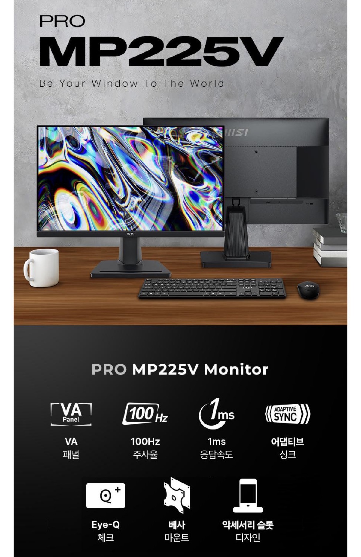 [쿠팡] MSI FHD PRO MP225V D-SUB VA 100 시력보호 모니터 무결점(78,570/무배)