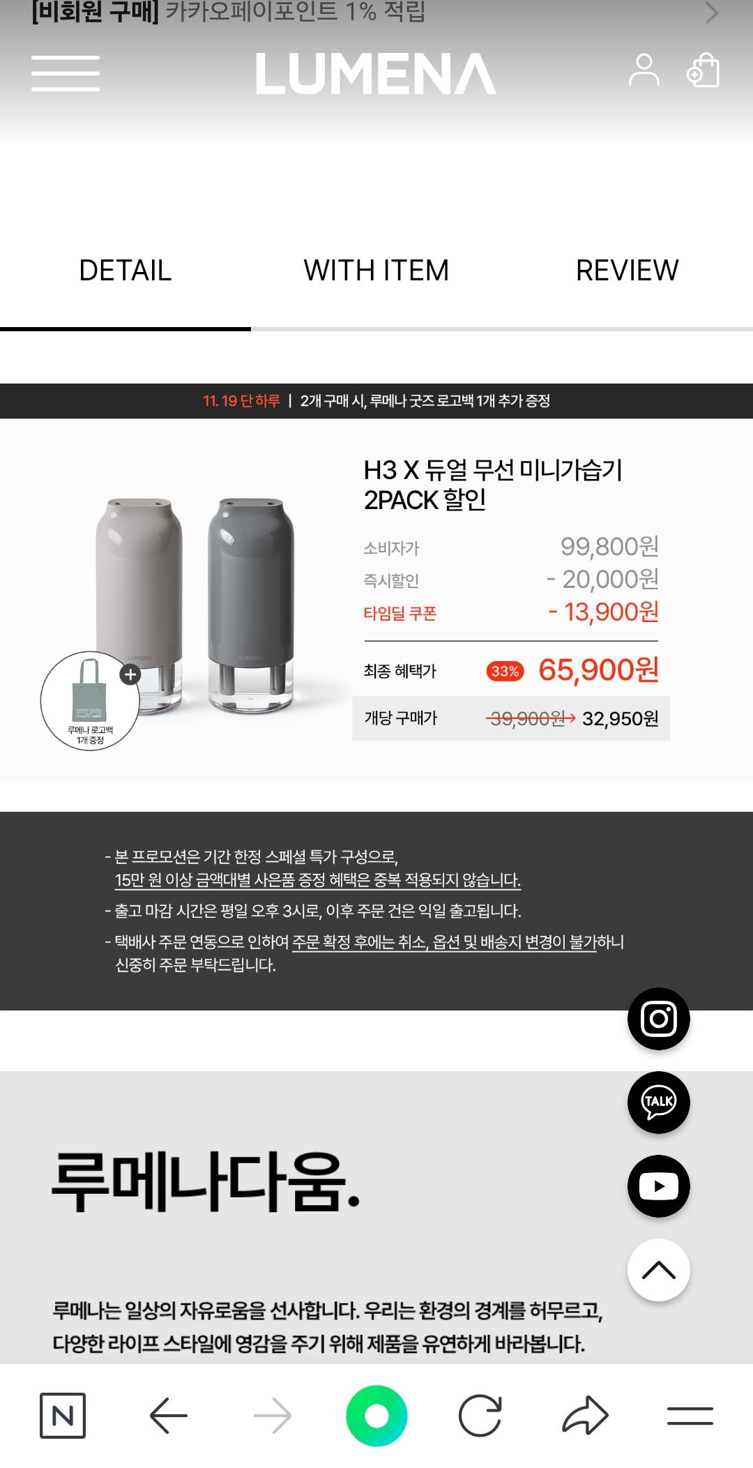 [자사몰] 루메나 듀얼 무선 가습기 H3X 2팩 (62,900원/무료) > 국내핫딜