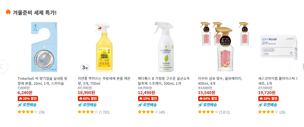 [쿠팡] 반값 생필품으로 겨울 대비! 50% 이상 할인 품목 다수! > 국내핫딜