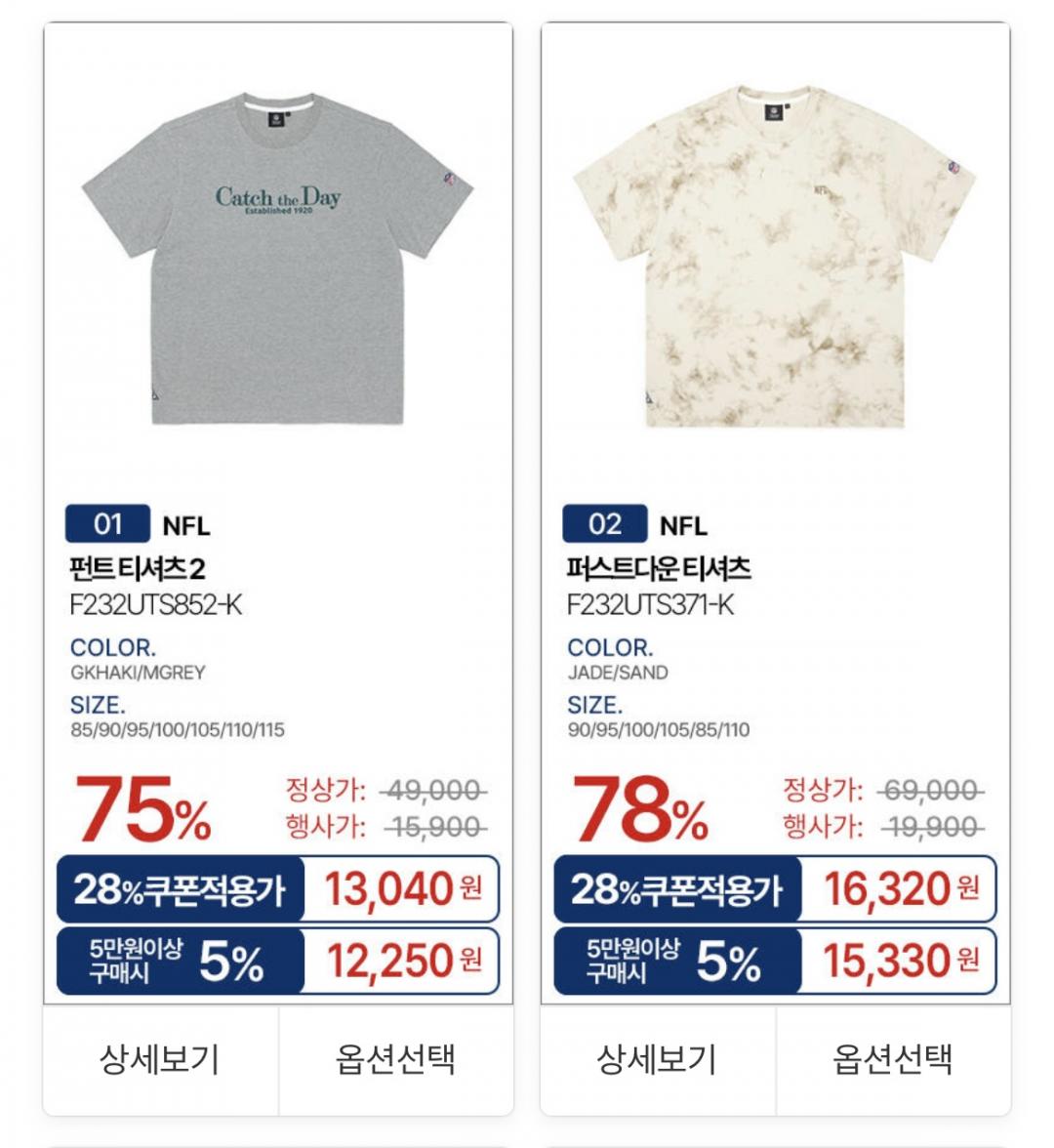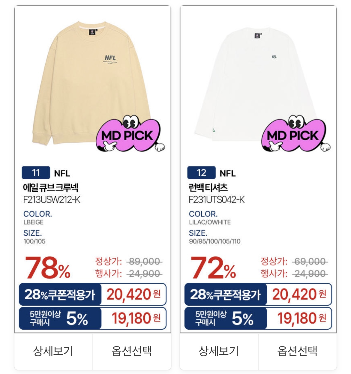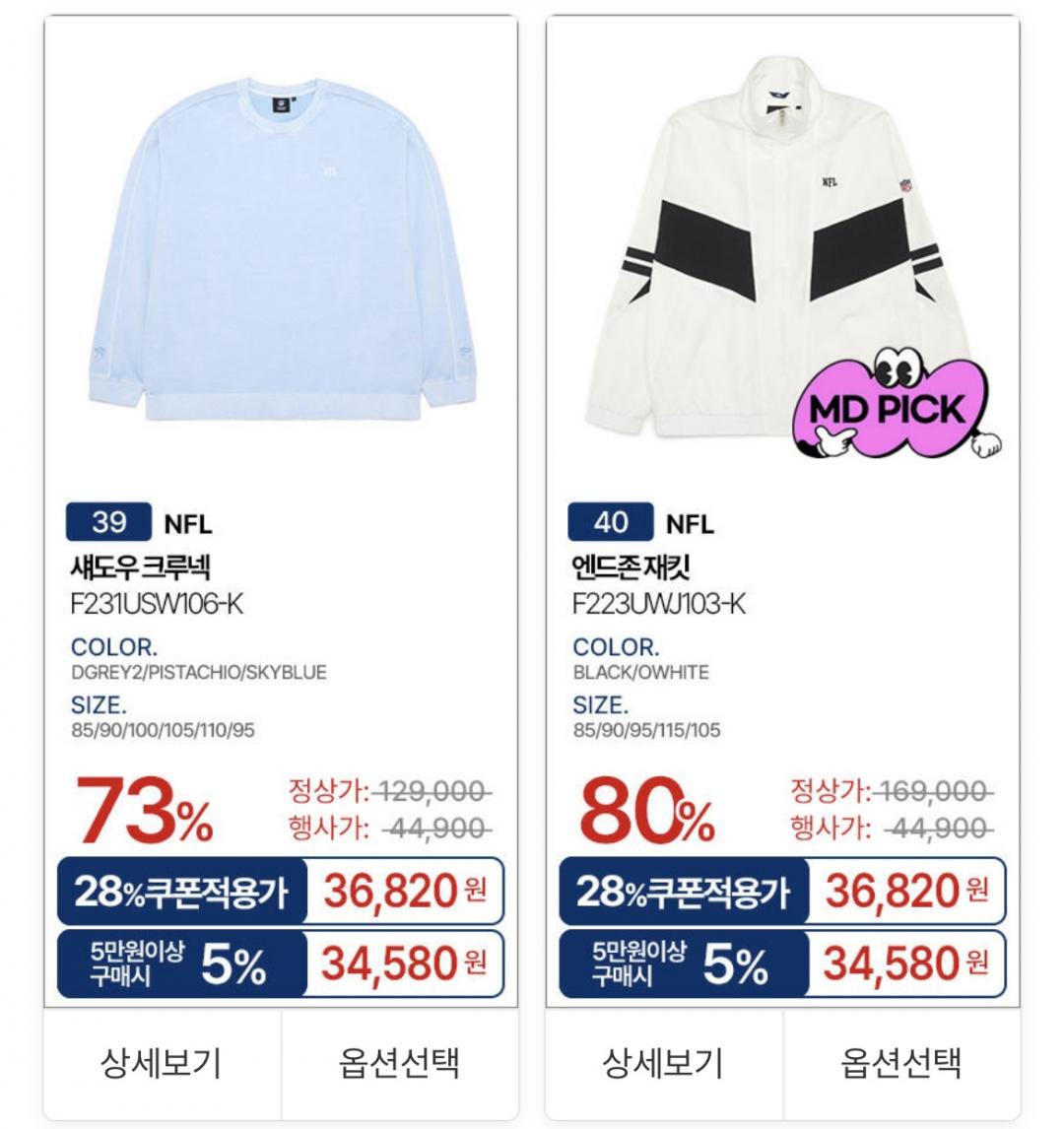 11번가) NFL 특가 맨투맨, 바람막이, 트레이닝 세트 (24,900원~/무배)