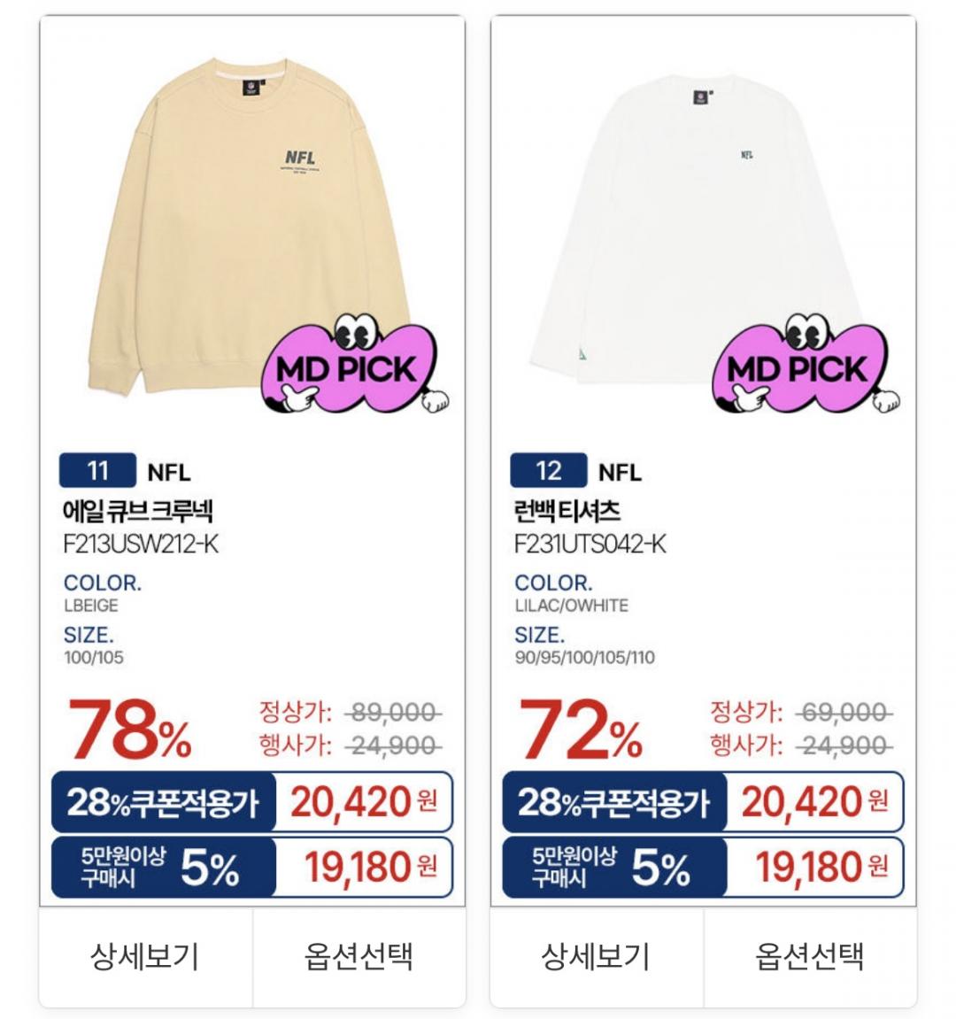 11번가) NFL 특가 맨투맨, 바람막이, 트레이닝 세트 (24,900원~/무배) > 국내핫딜