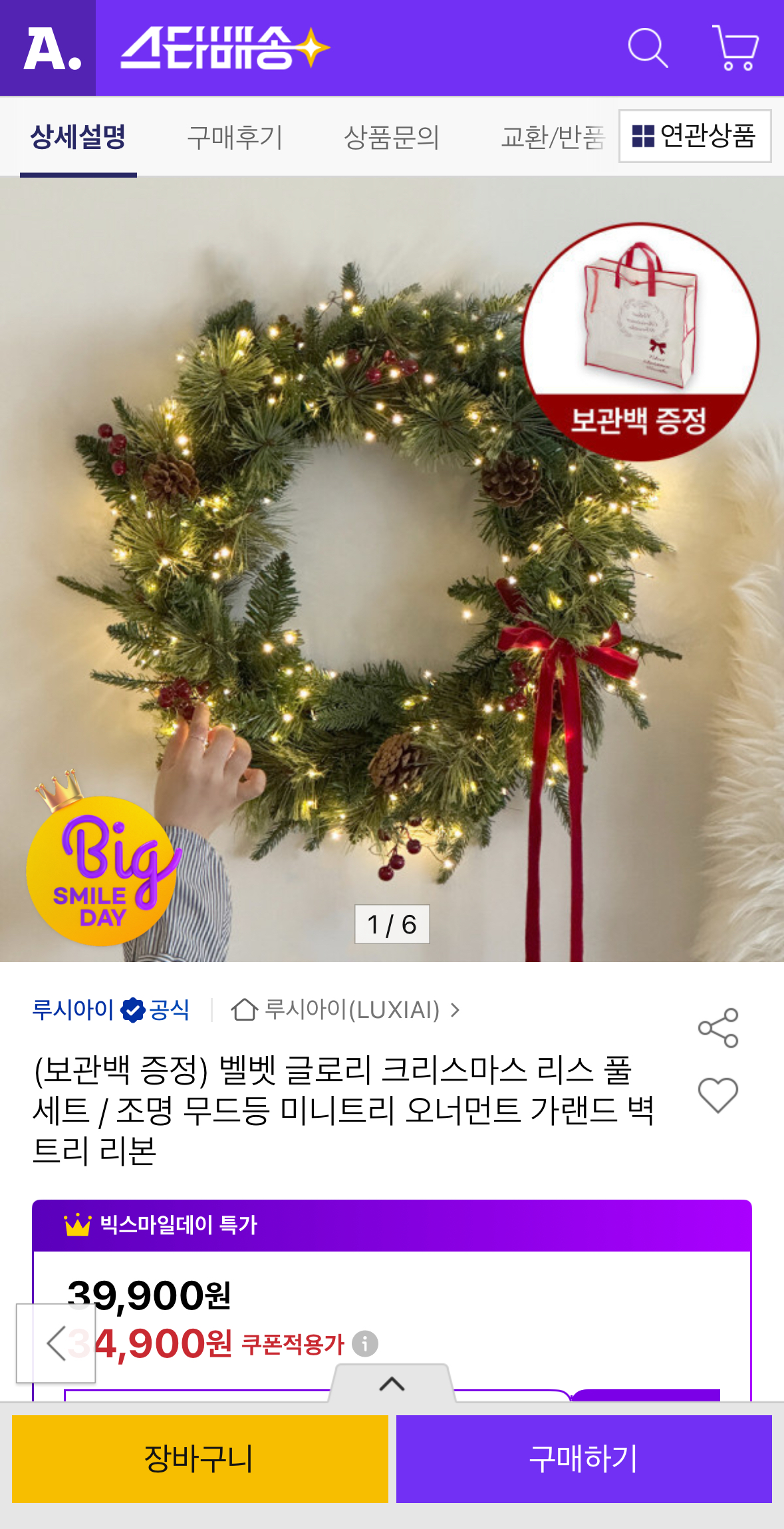 [옥션] 벨벳리본 크리스마스 리스 풀세트 보관백 증정 (34,900원/무배)