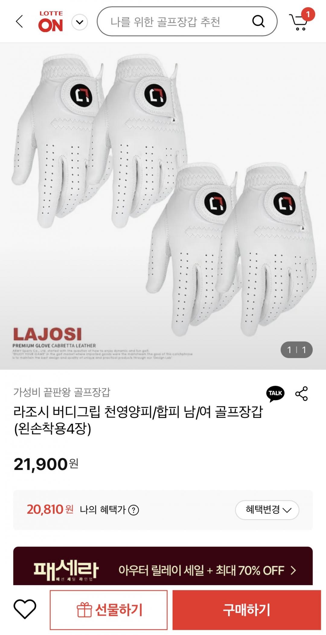 [롯데온] 세븐힐스 라조시 버디그립 천영양피 골프장갑 4장 (20,810원/무료)