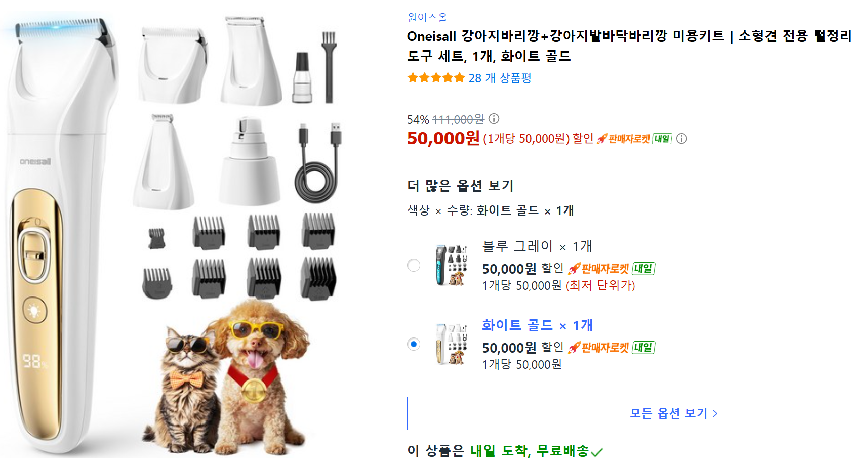 [쿠팡] 애견바리깡+애견발바닥바리깡 미용 키트 (50,000원/무료)
