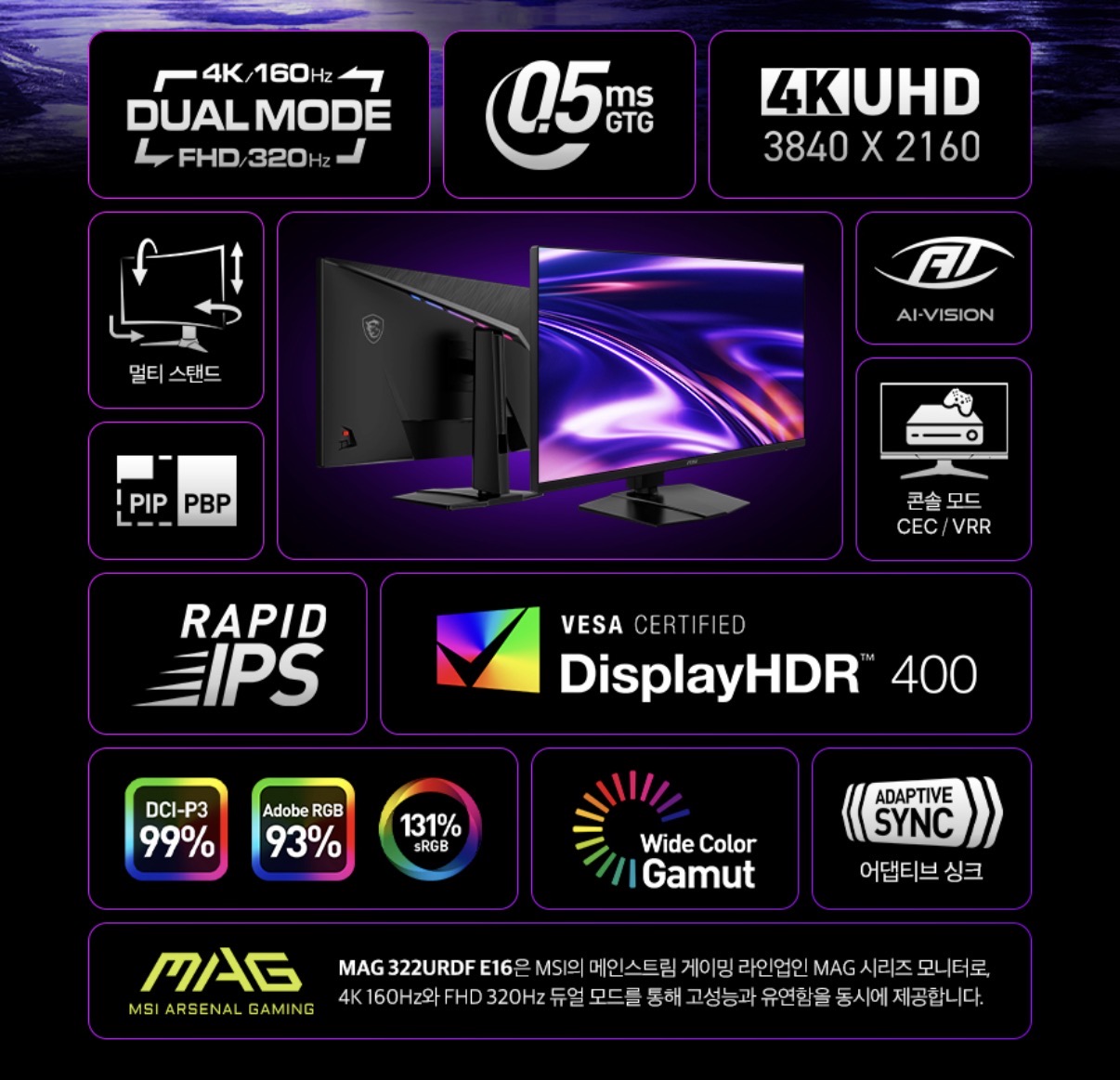 160hz or 320hz 선택 가능한데다 HDMI 2.1 포트 2개까지 지원합니다ㅎ