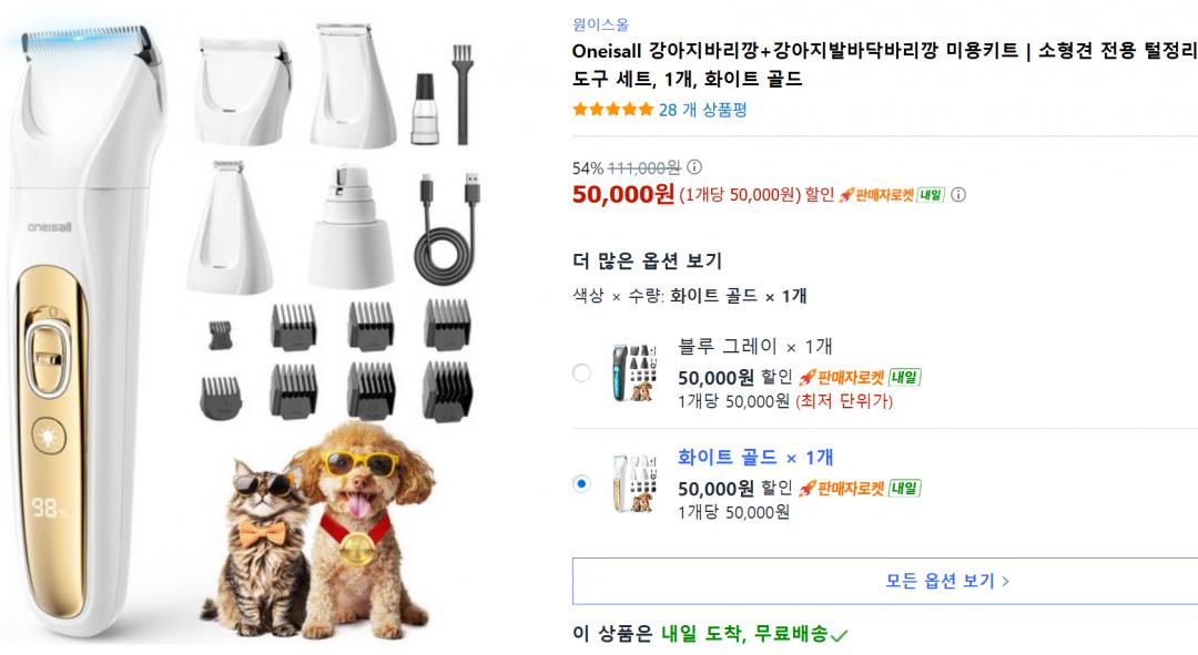 [쿠팡] 애견바리깡+애견발바닥바리깡 미용 키트 (50,000원/무료)