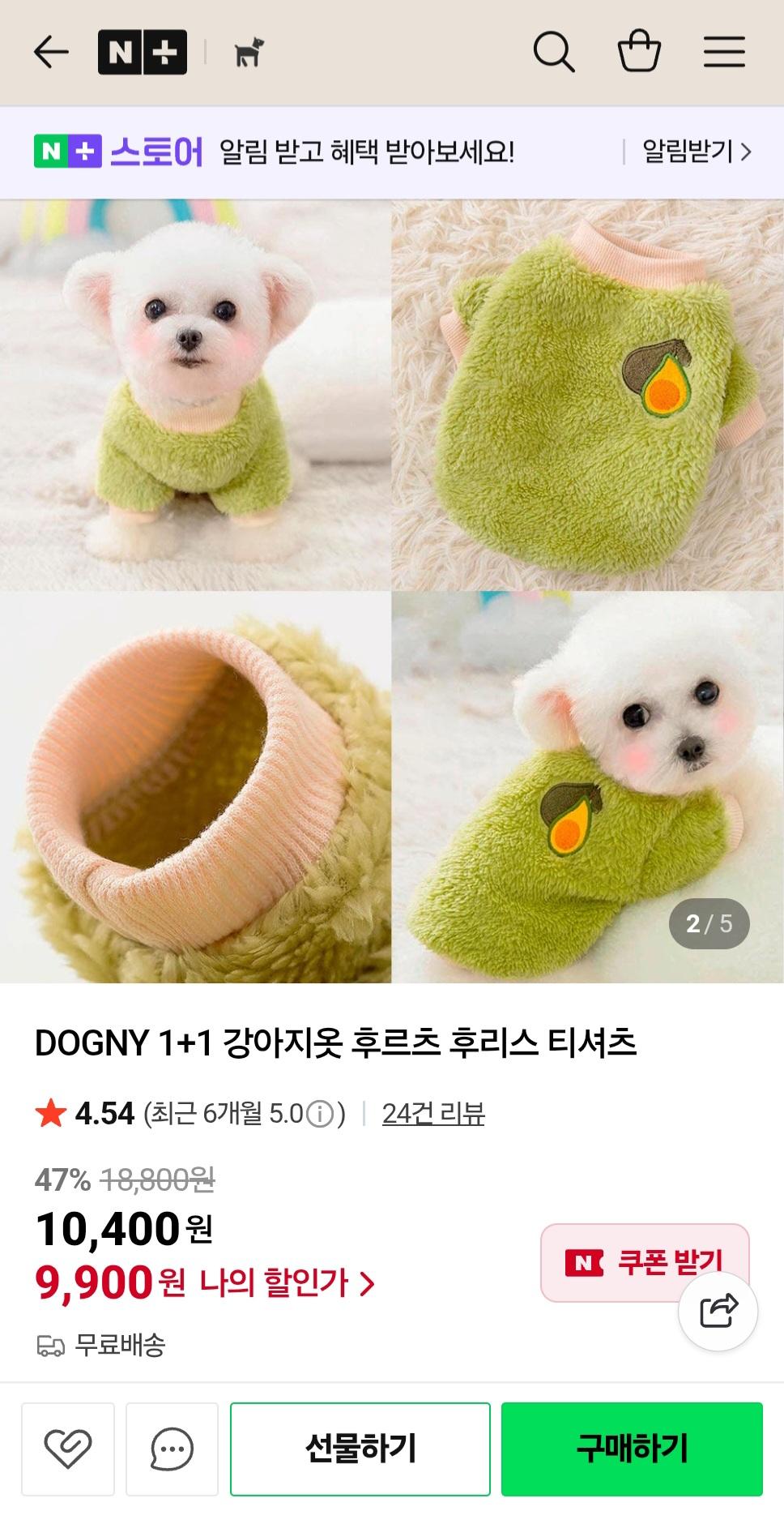[네이버] 1+1 강아지겨울옷 후리스 티셔츠 (9,900원/무료)