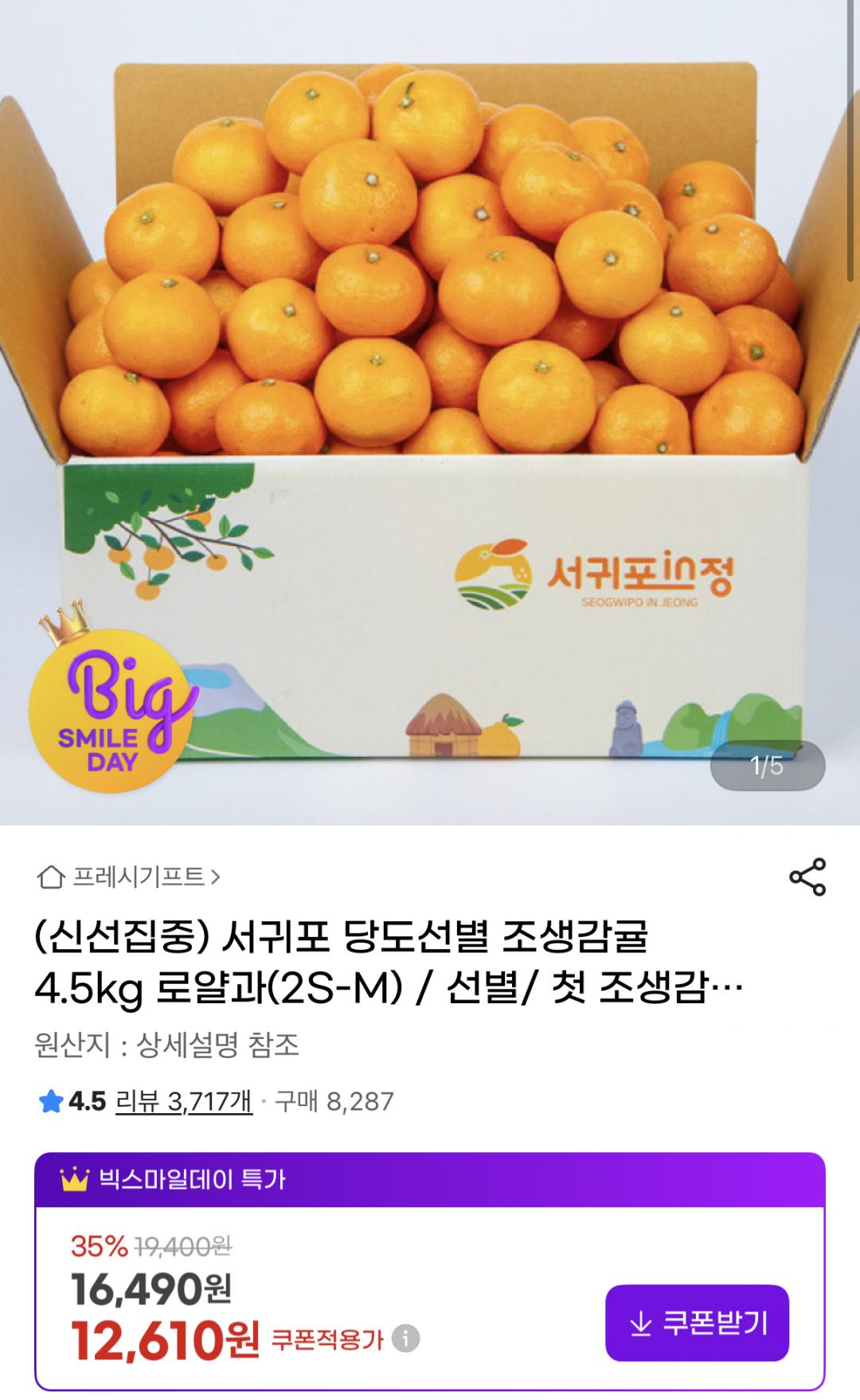 [지마켓] 서귀포 조생감귤 4.5kg (12,610원/무료)