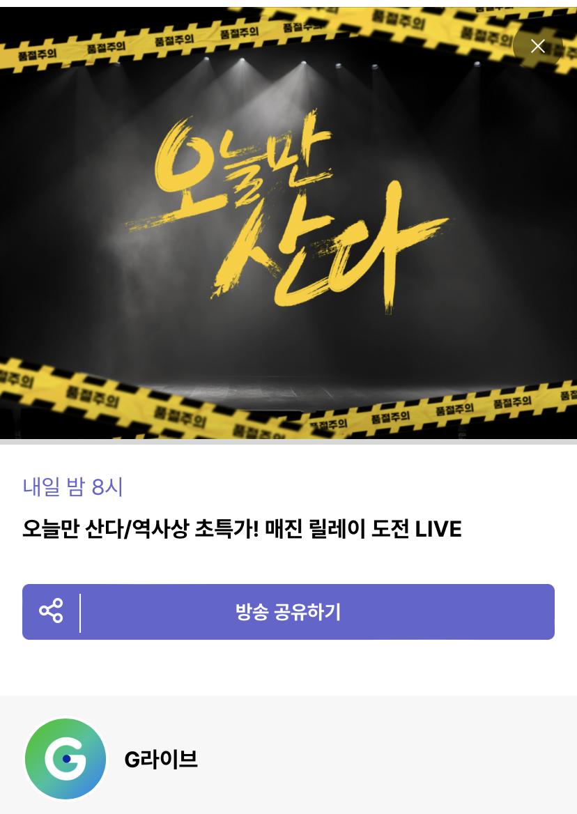 11월10일 오후8시 G라이브 오늘만 산다/역사상 초특가! 매진 릴레이 도전 LIVE 진행 합니다.
