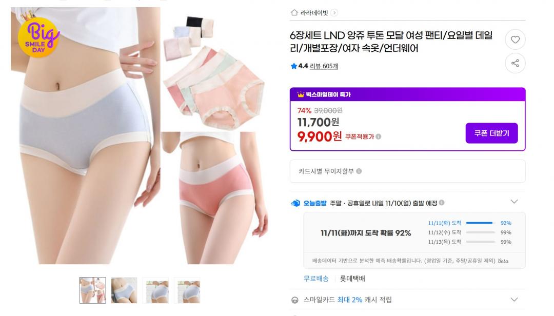 [지마켓] LND 앙쥬 투톤 모달 여성 팬티 6매 (9900원/무배) > 국내핫딜