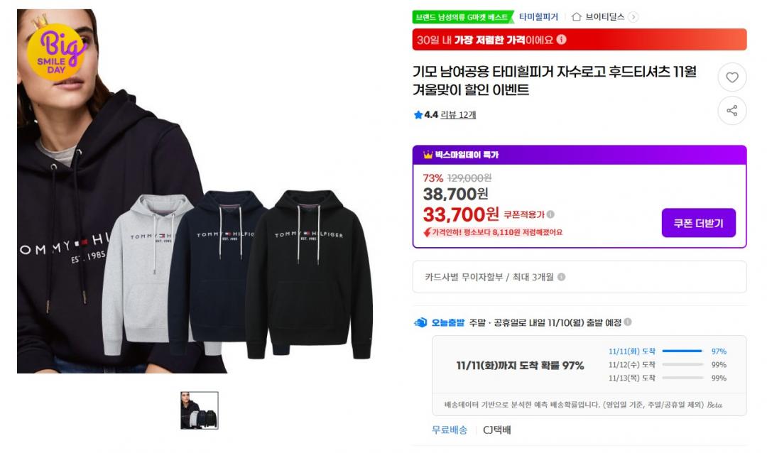 [지마켓] 기모 남여공용 타미힐피거 자수로고 후드티셔츠 (33,700원/무배) > 국내핫딜