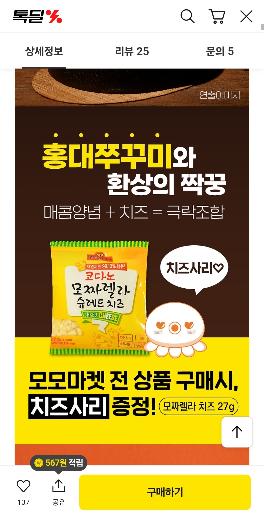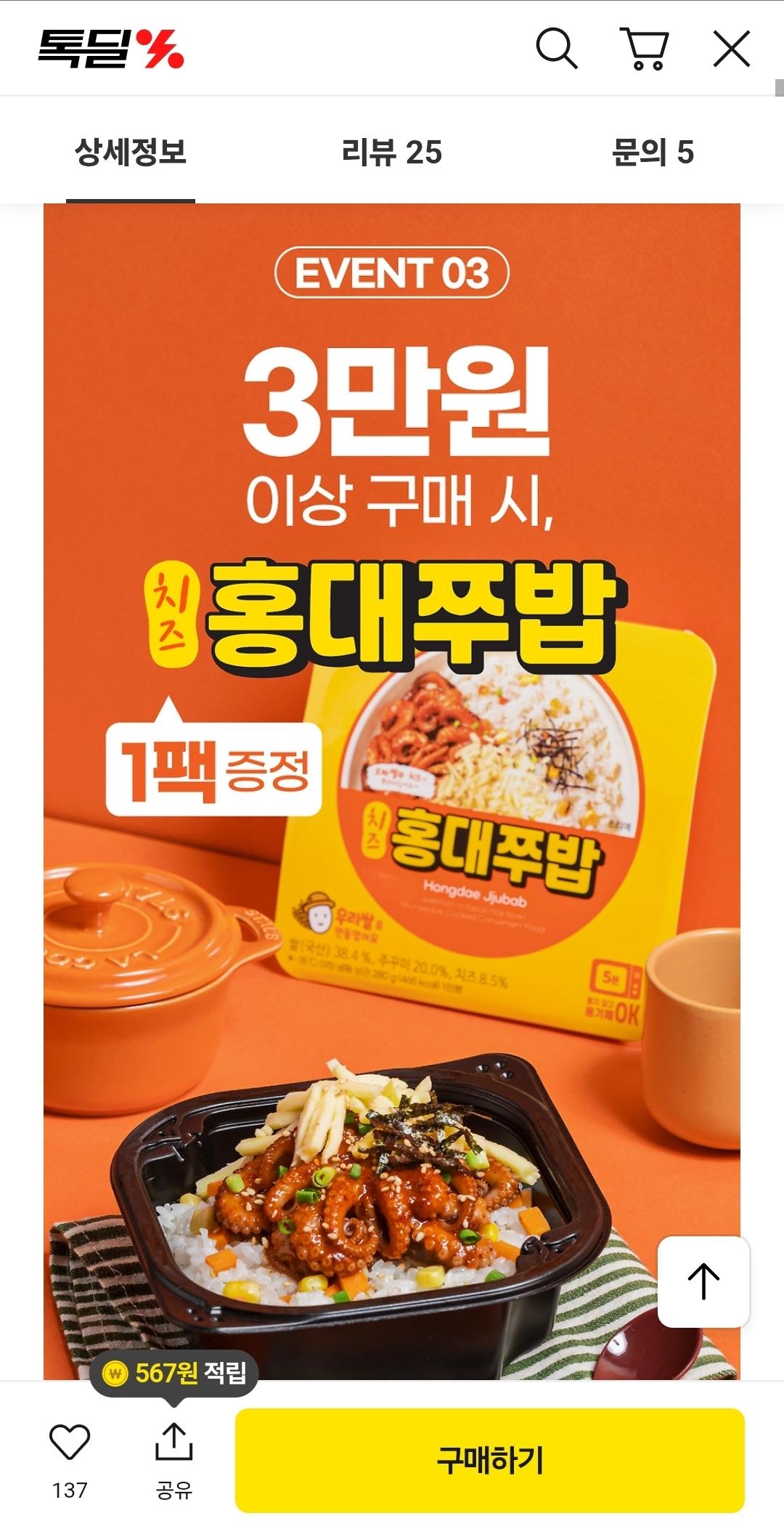 치즈사리 무료증정 , 3만원이상 구매시 쭈밥 1팩증정도있습니다​