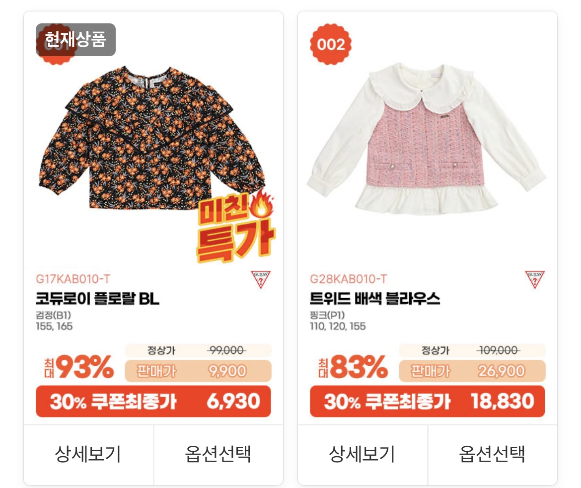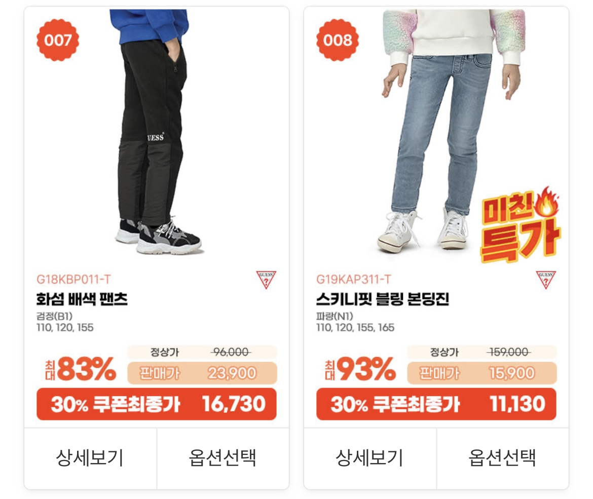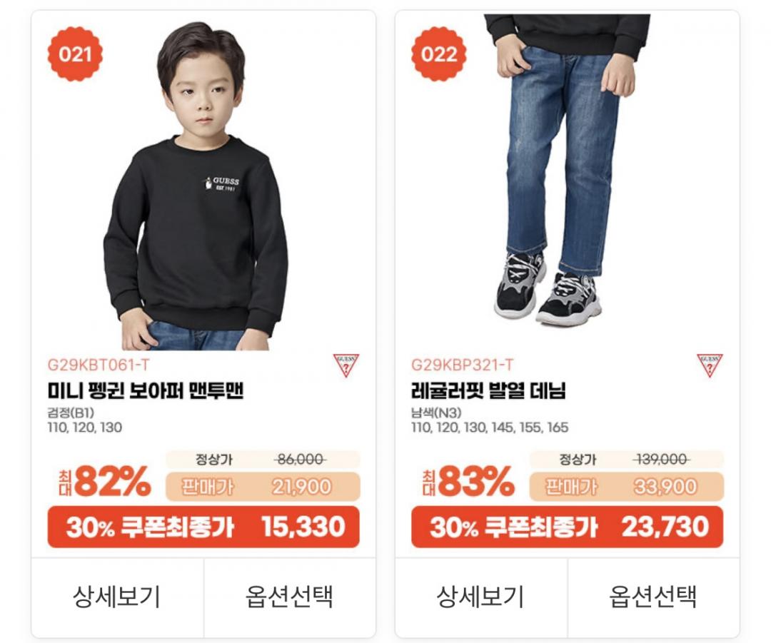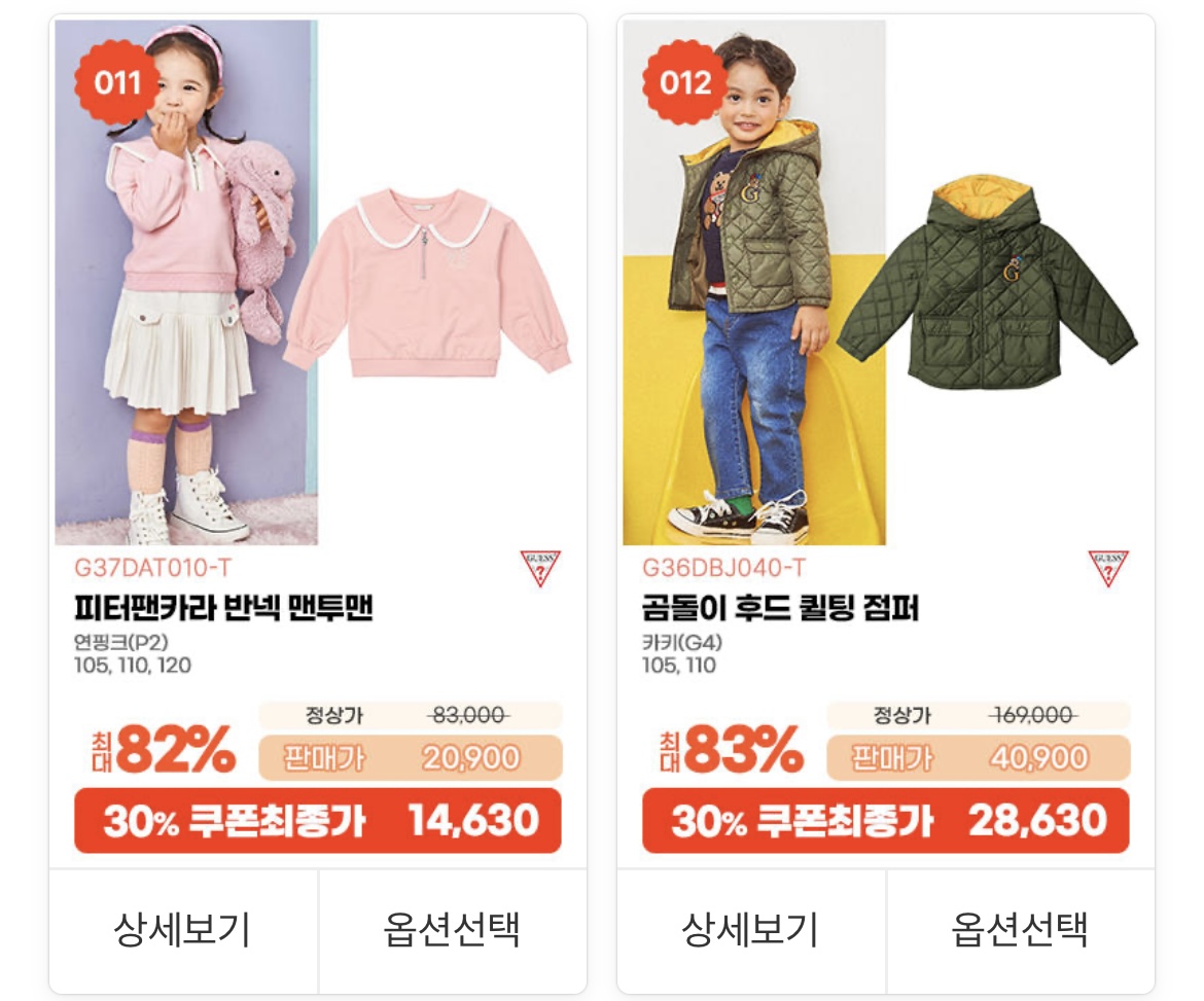 [11번가] 게스키즈 최대 87%할인 데일리룩 특가(6,450원부터~/무배) > 국내핫딜