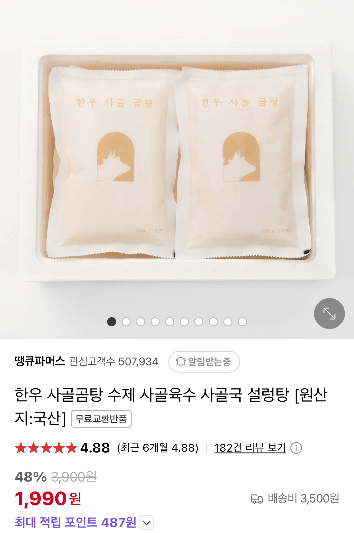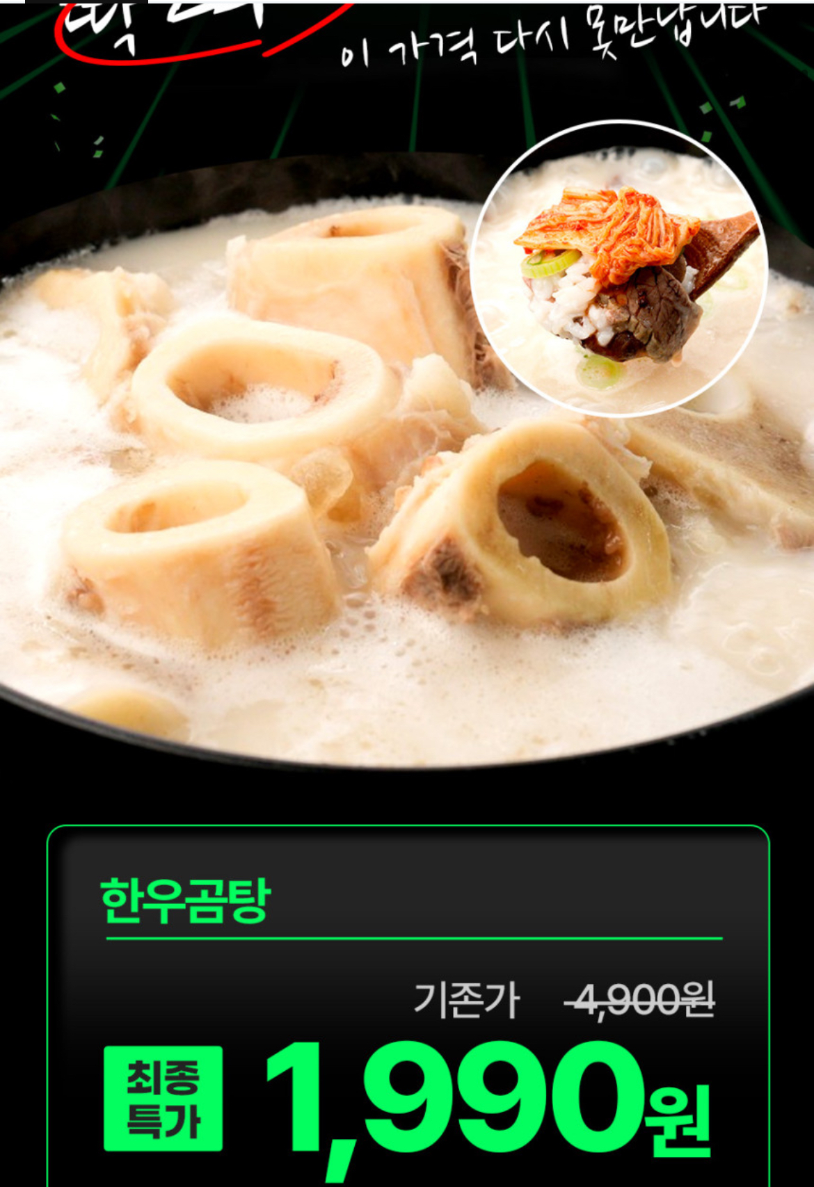 [네이버] 한우 사골곰탕 육수 350g 1팩 (1,990원/유배) > 국내핫딜
