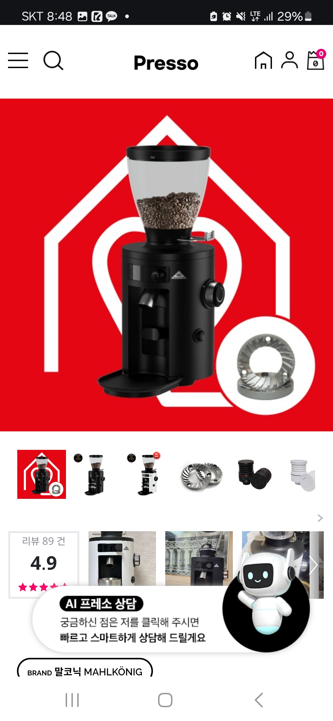 말코닉 커피 그라인더 공식 수입사 프레소에서 사용중인 그라인더 인증하면 25% 쿠폰 받을 수 있습니다.