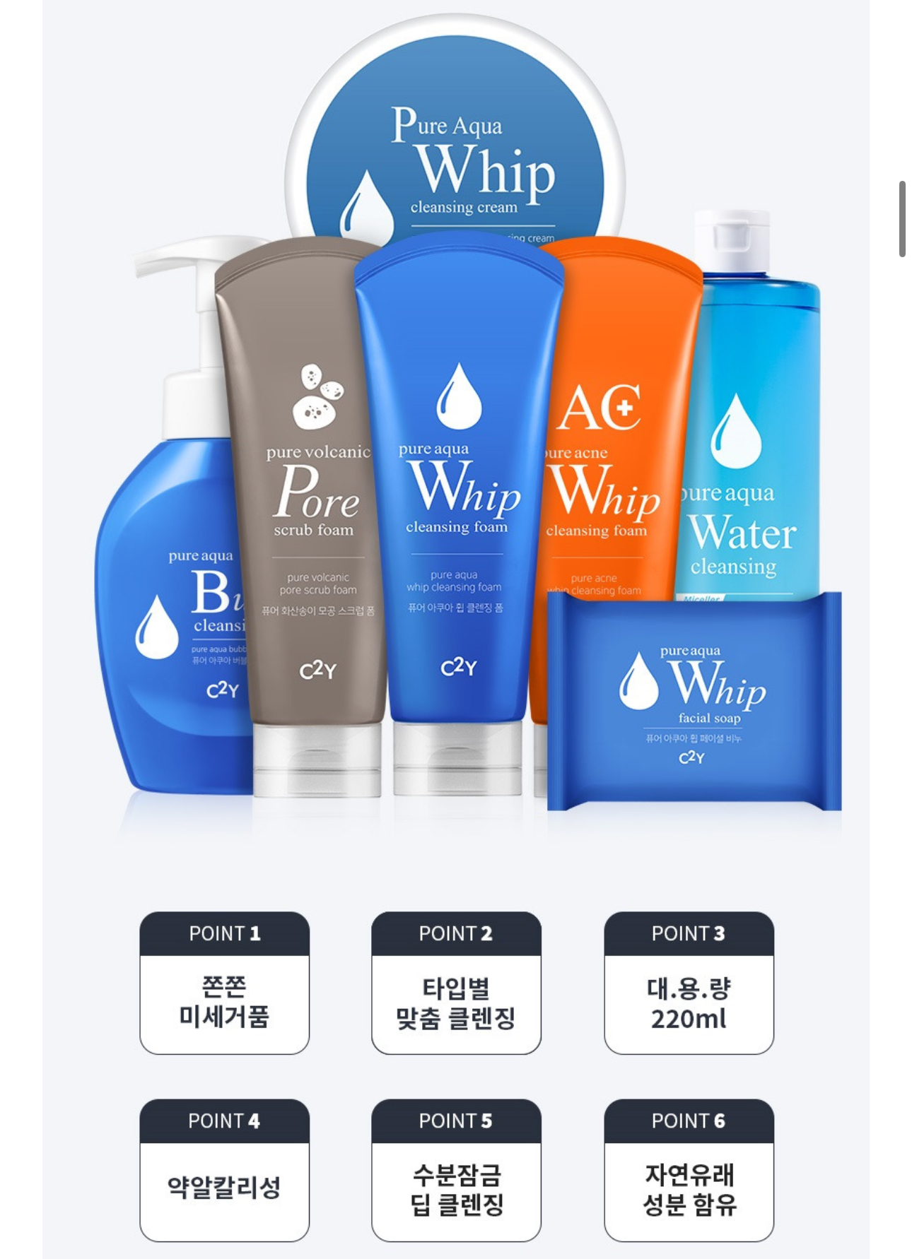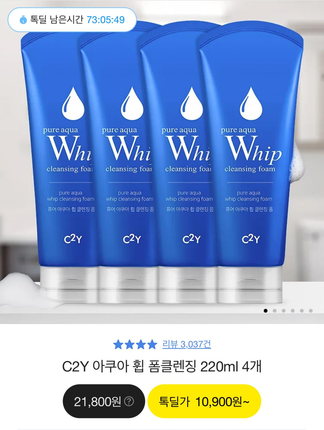 [카카오톡딜] C2Y 아쿠아 휩 폼 클렌징 220ml 4개 (10,900원/무료) > 국내핫딜