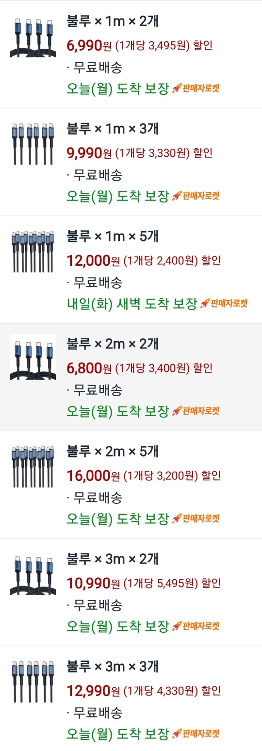 2미터짜리 2개 6,800원, 개당 3,400원입니다