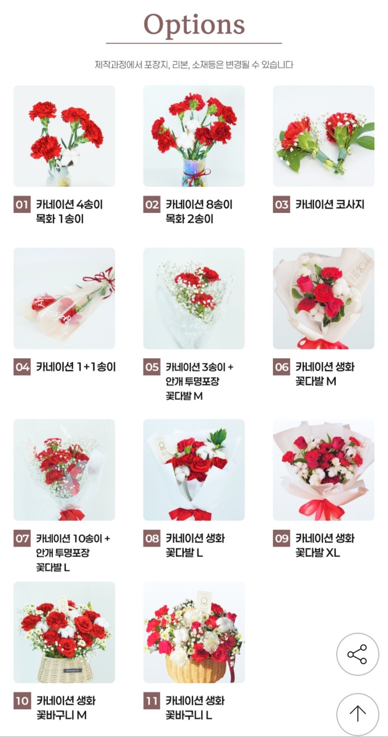 생화 꽃다발 코사지 바구니까지 다양하네요