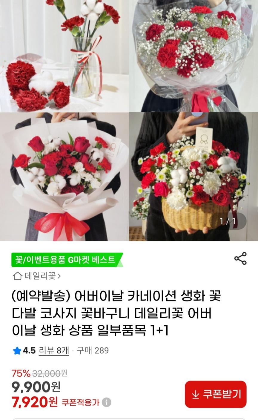 [지마켓] 예약발송 어버이날 카네이션 생화 꽃다발 코사지 꽃바구니 데일리꽃 다양 일부1+1 ( 7,920원~ /무료) > 국내핫딜