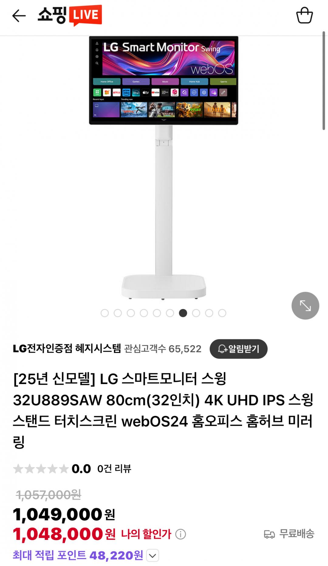 [네이버] LG 스마트모니터 스윙 32U889SAW (889,000원/무배) > 국내핫딜