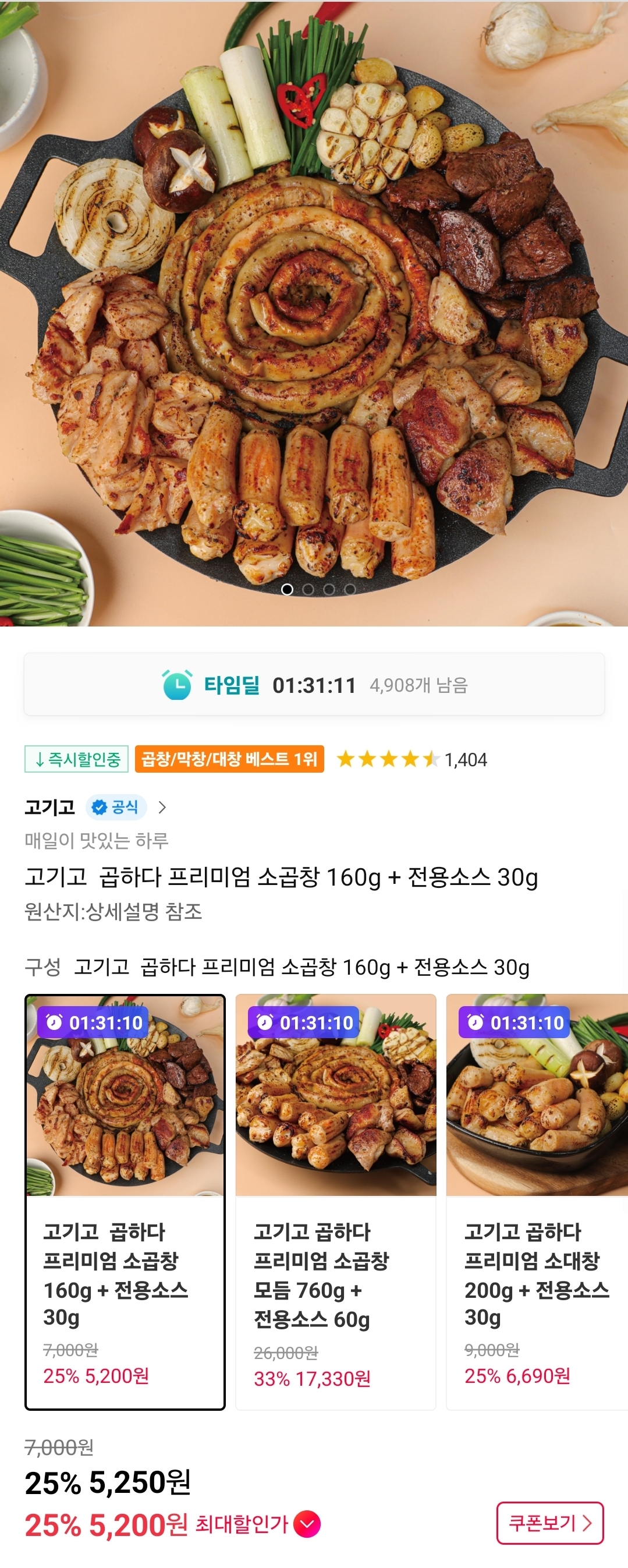 [11번가] 고기고 소곱창 160g + 전용소스 30g (5,250원/무료) > 국내핫딜