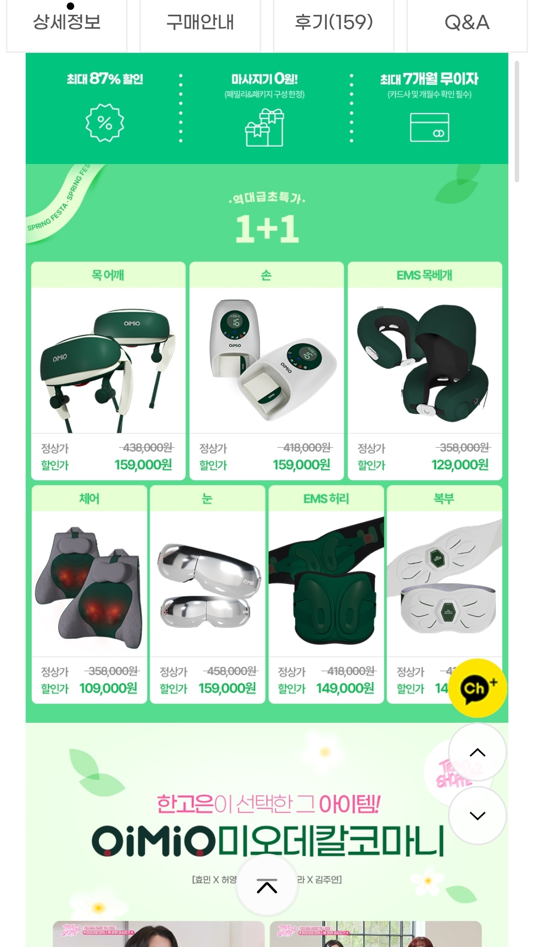 공식몰) 두드림 기능 있는 목어깨마사지기 64% 1+1 기획전 (159,000원 / 무배)