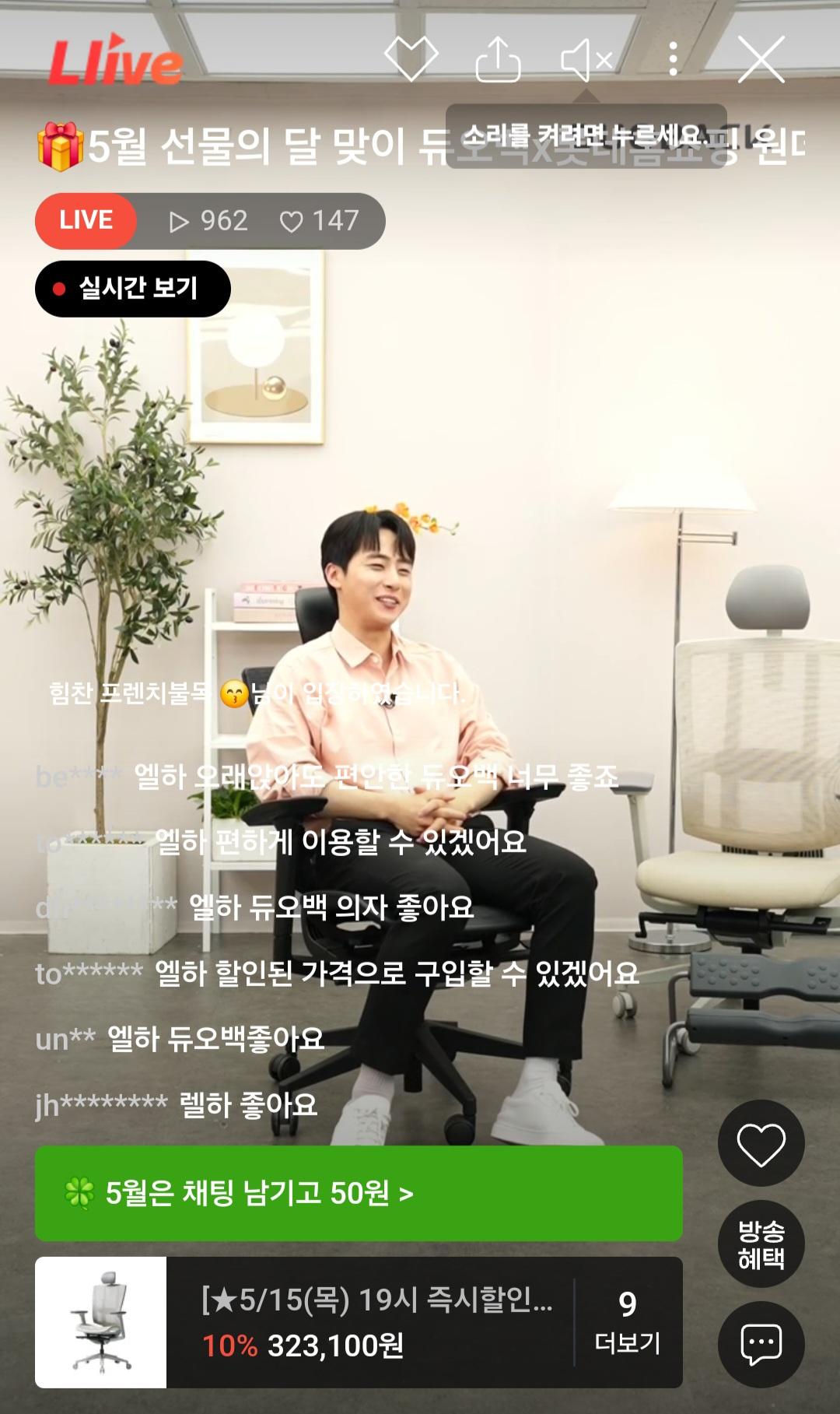 라이브 중 구매 진행하면 좌식의자 3명 추첨 증정있고