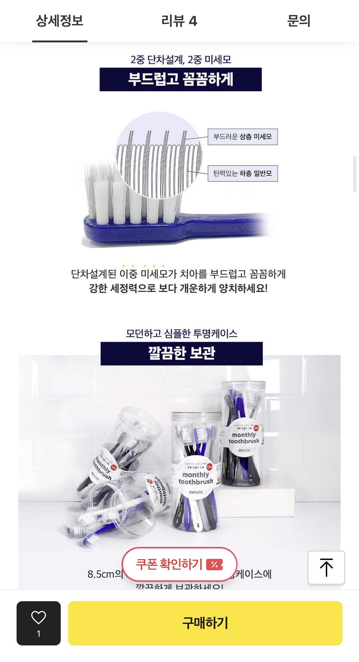 [카카오]덴클 휴대용 먼슬리 칫솔 12개입 (9,800원/무료) > 국내핫딜