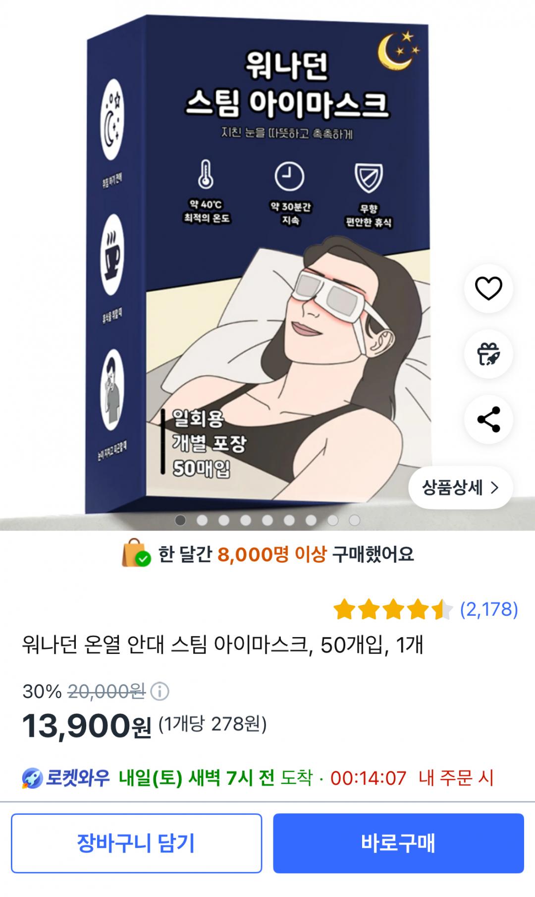 [쿠팡] 워나던 온열 스팀 아이마스크 50매 (13,900원 / 무료배송) > 국내핫딜
