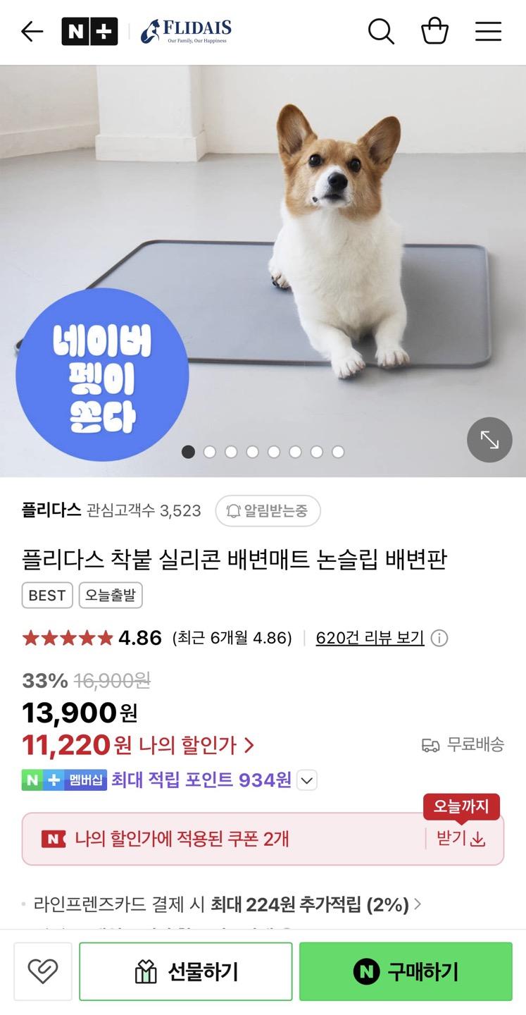 [네이버] 플리다스 착붙 실리콘 배변매트 (11,220원/무료배송)