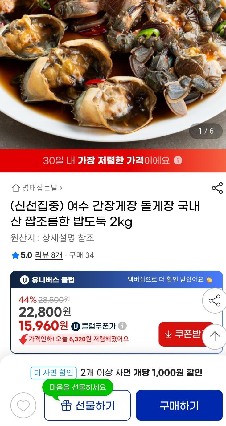 [지마켓] 여수 간장게장 돌게장 2kg (15,960원 / 무배) > 국내핫딜