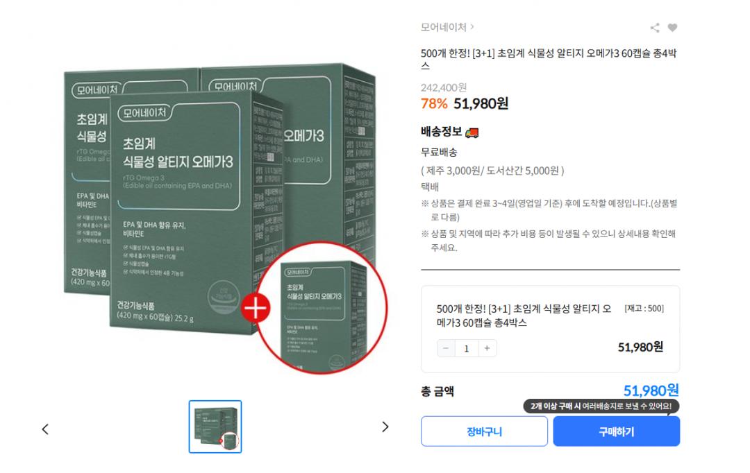 [삼성카드쇼핑] 오메가3 60캡슐4개 (51980/무료) > 국내핫딜