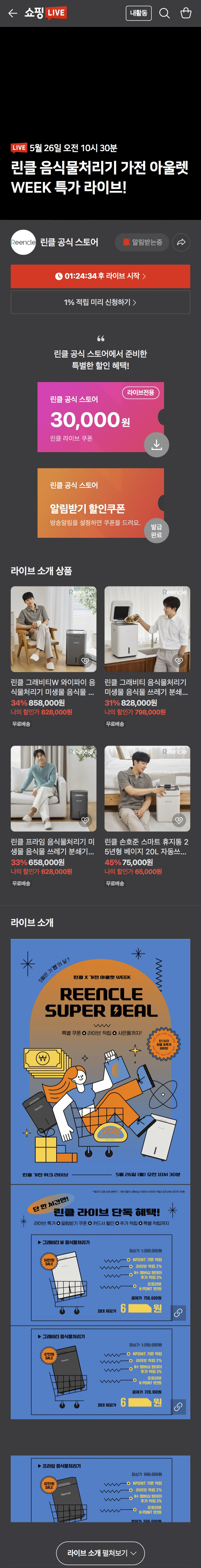 [네이버] 린클 음식물처리기 라방 특가(566,600원~/무배) > 국내핫딜