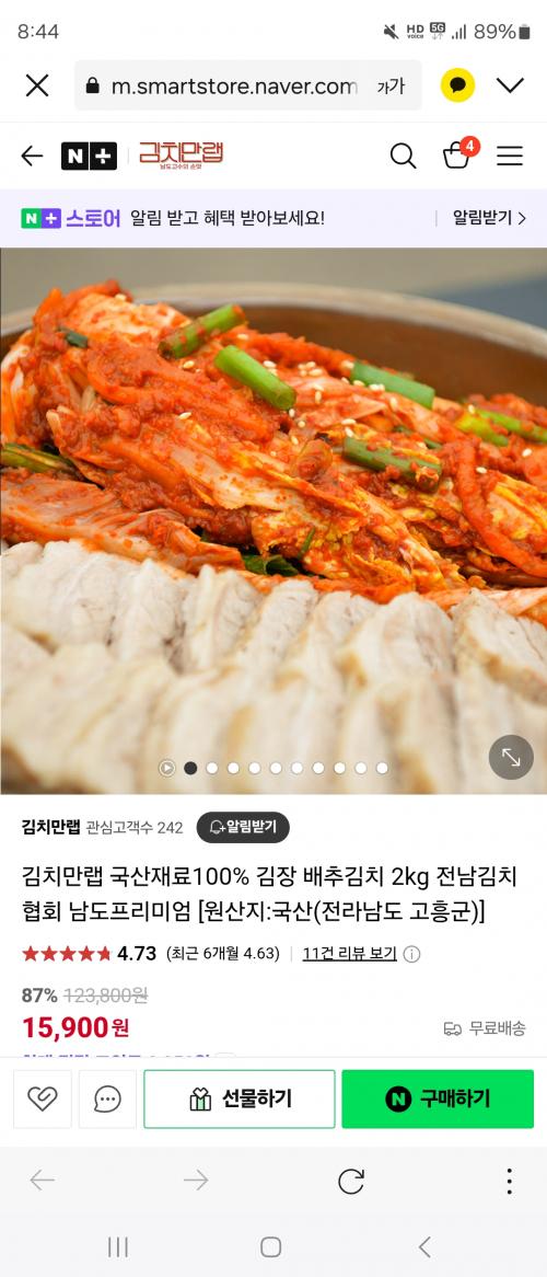 [네이버] 국산재료100 배추김치 2kg (15,900원/무료) > 국내핫딜