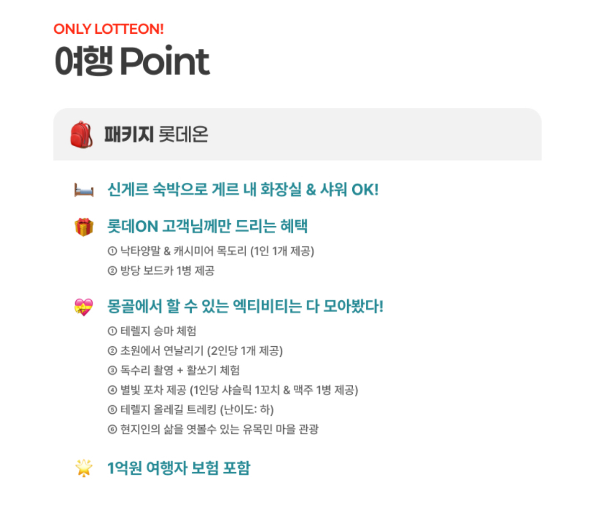 [롯데온] 몽골/테렐지 4일/5일/6일 일정 (474,840원/무배)