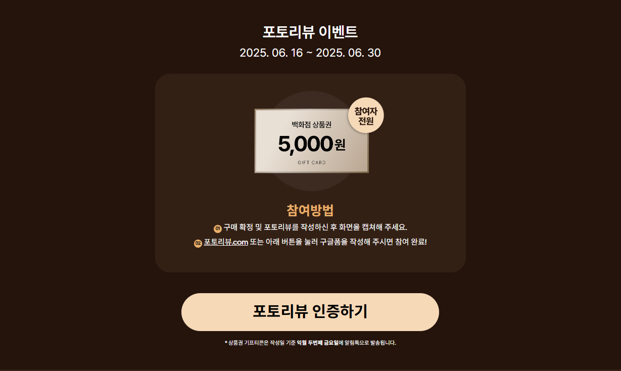 포토리뷰까지 하면 전원 백화점상품권 5천원 증정도 있습니다.​