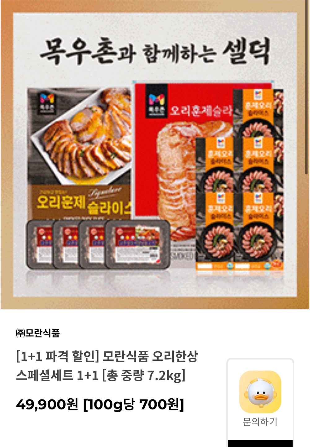 오리덕몰에서 역대 행사해서 공유합니다 목우촌이랑 특별기획세트로 나온 구성