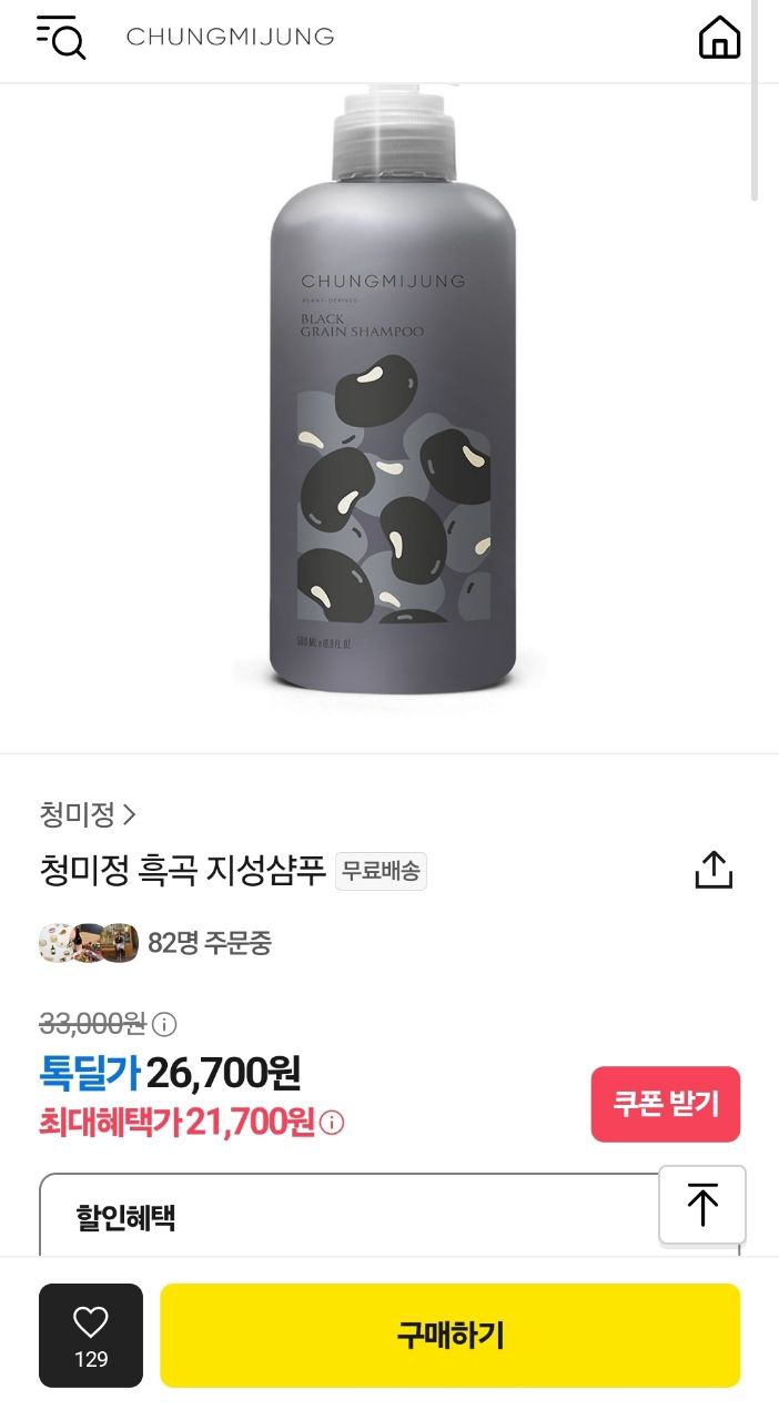 [카카오] 청미정 흑곡 지성샴푸 500ml (26,700원/무배) > 국내핫딜
