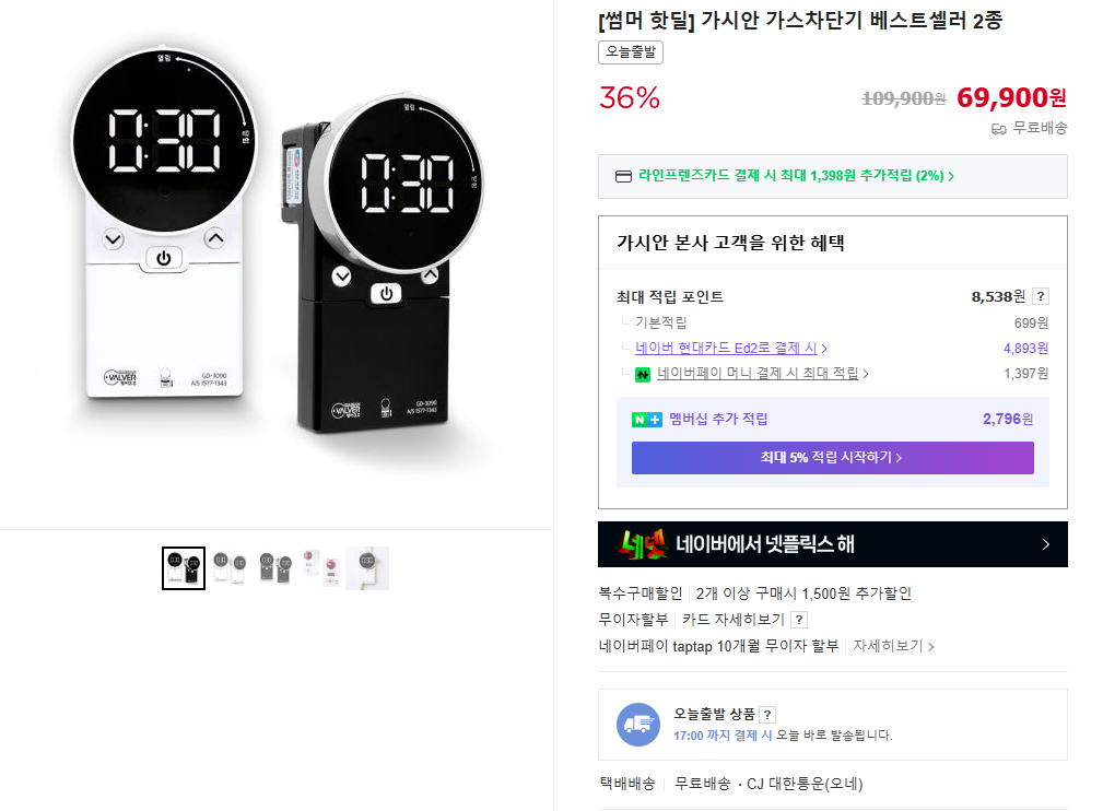 [네이버] 가시안 가스차단기 GD-3090 밸버3.0 (69,900원 / 무료)