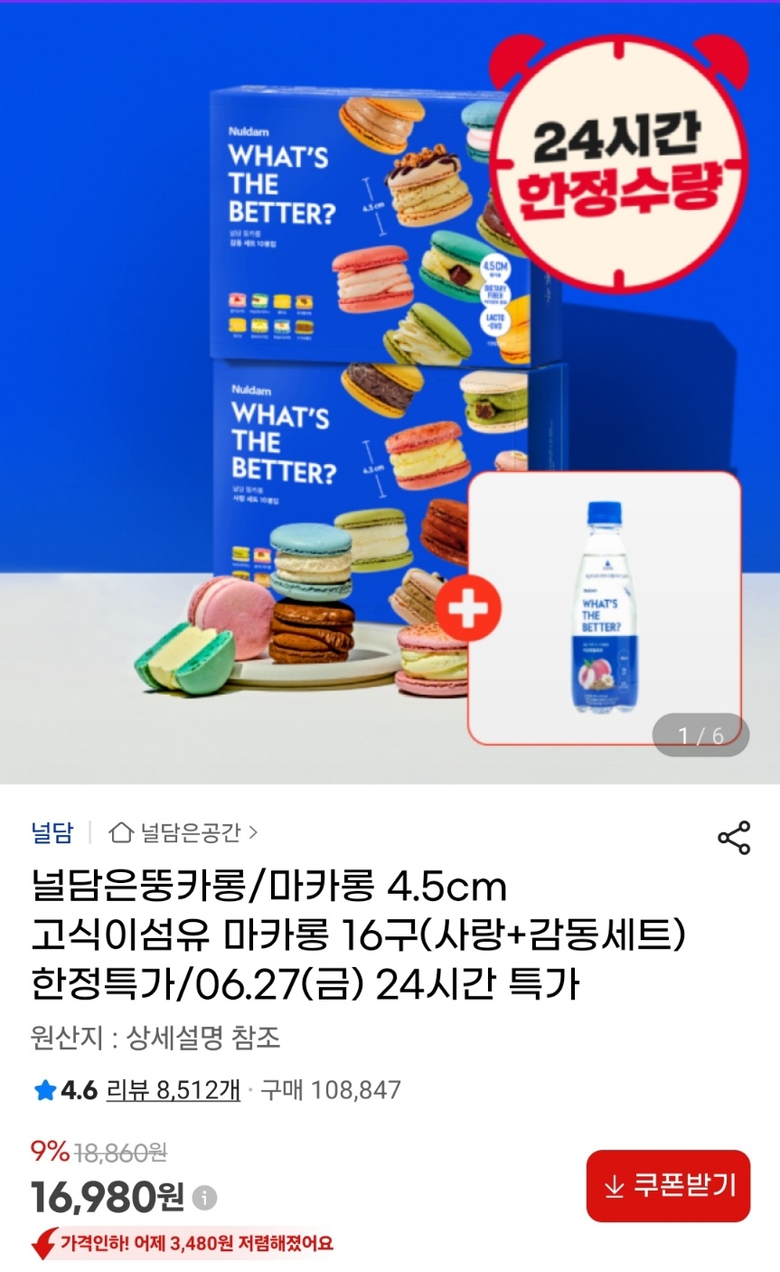 [[G마켓] 고식이섬유 마카롱 널담은뚱카롱 4.5cm 16구 (16,980원/무료) > 국내핫딜