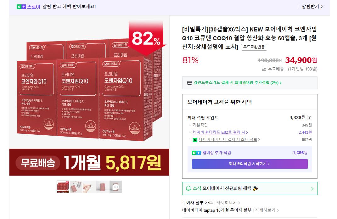 [네이버] 코엔자임 Q10 코큐텐 60캡슐*3개 (34,900원/무료)